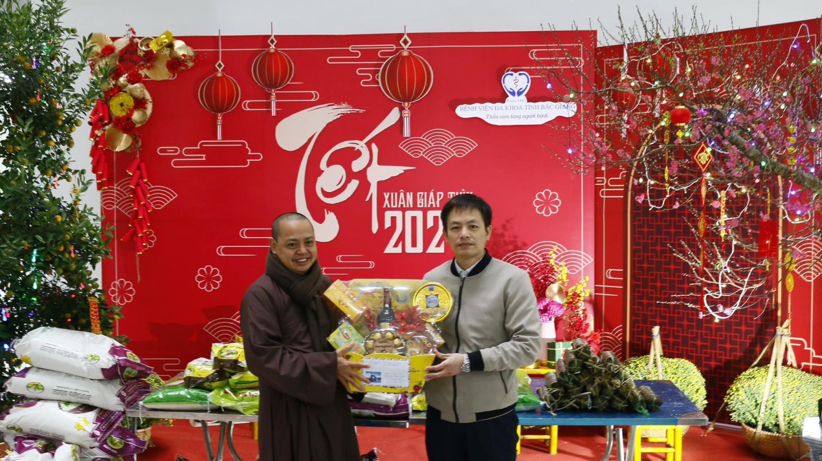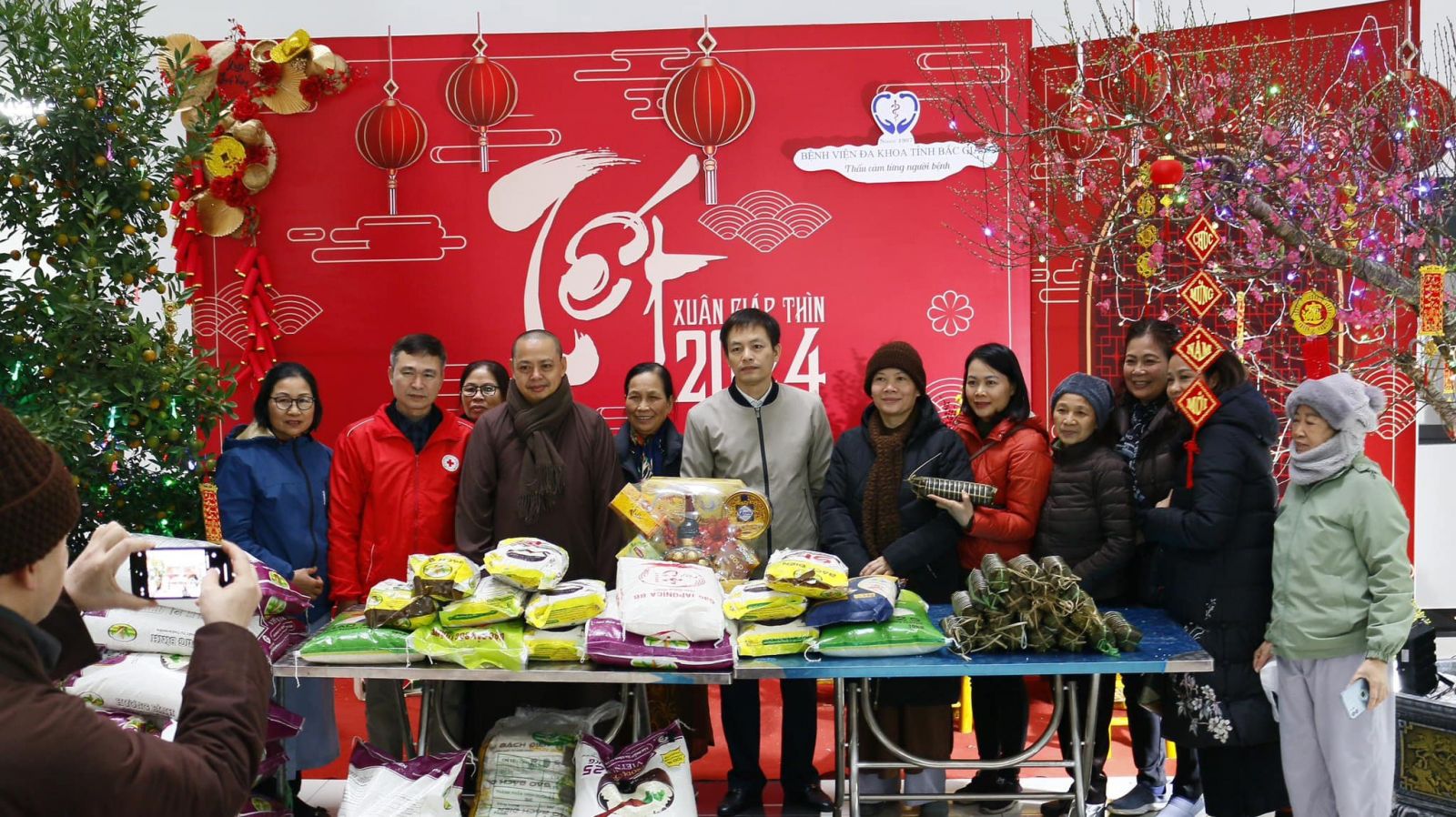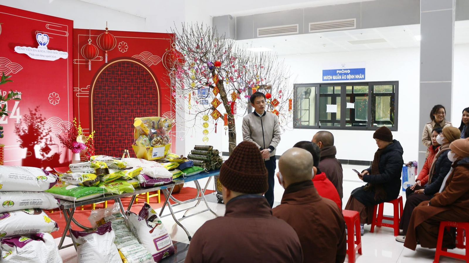 Trong không khí đầm ấm, thân tình, vui tươi, Bệnh viện đã tiếp nhận 310 kg gạo tẻ; 20 chiếc bánh chưng từ Thượng toạ và các đạo tràng. Đây là món quà vô cùng ý nghĩa, có tính nhân văn sâu sắc thể hiện tinh thần "Tương thân tương ái" giữa người với người trong mỗi dịp Tết đến Xuân về.