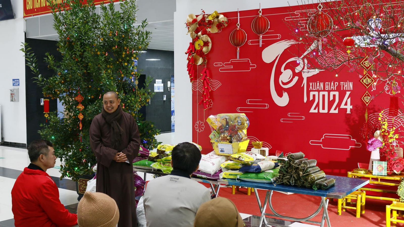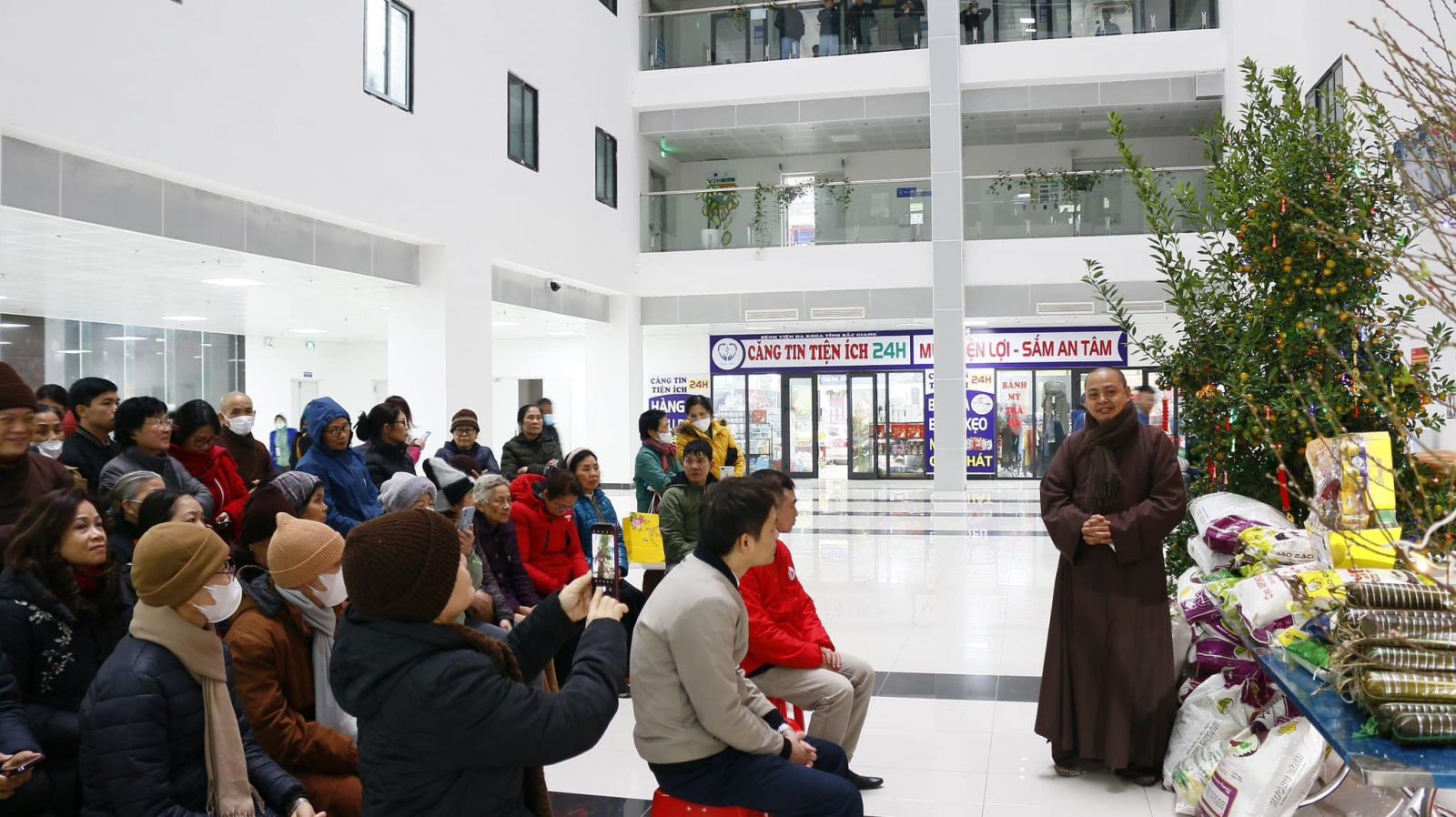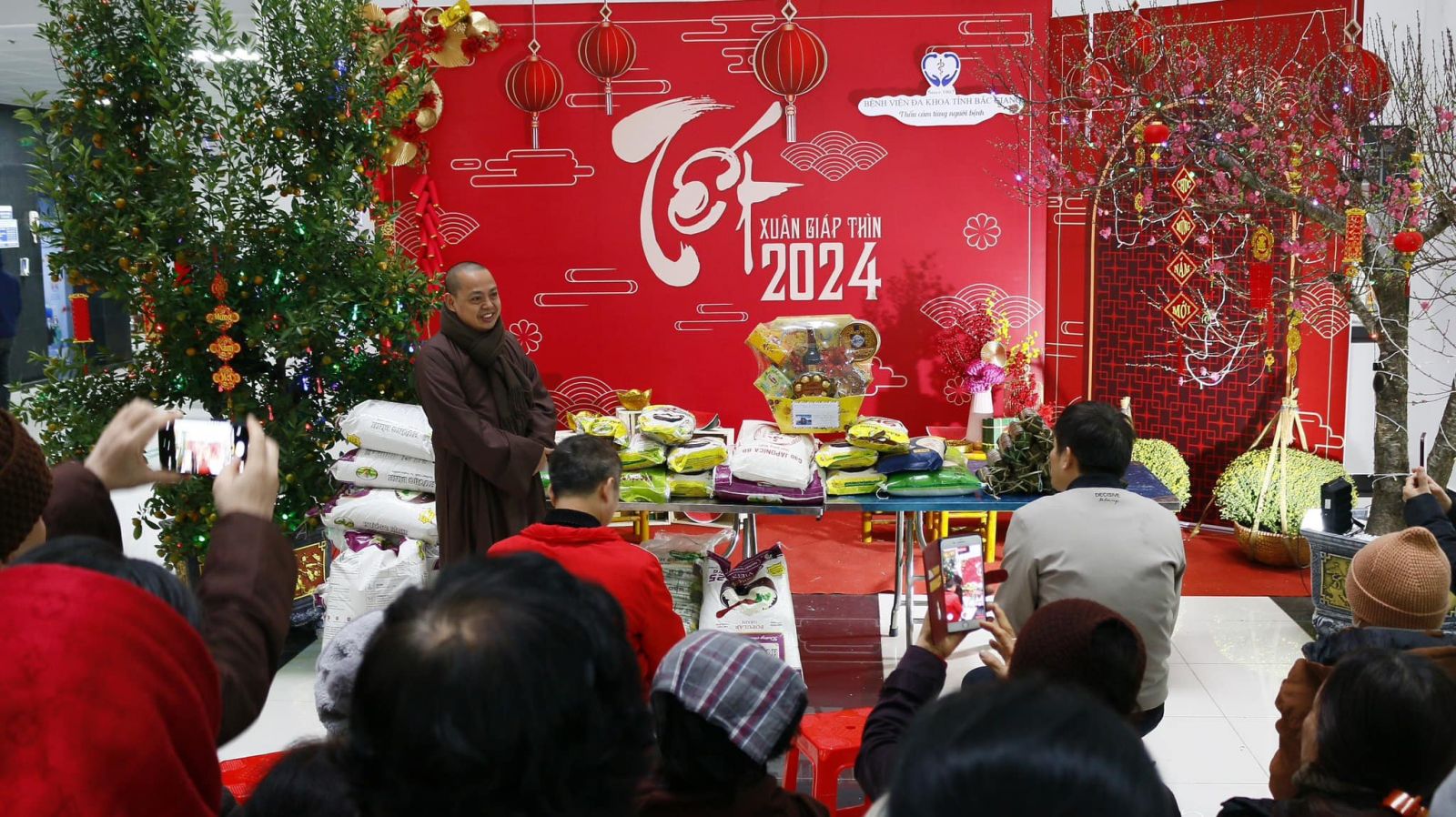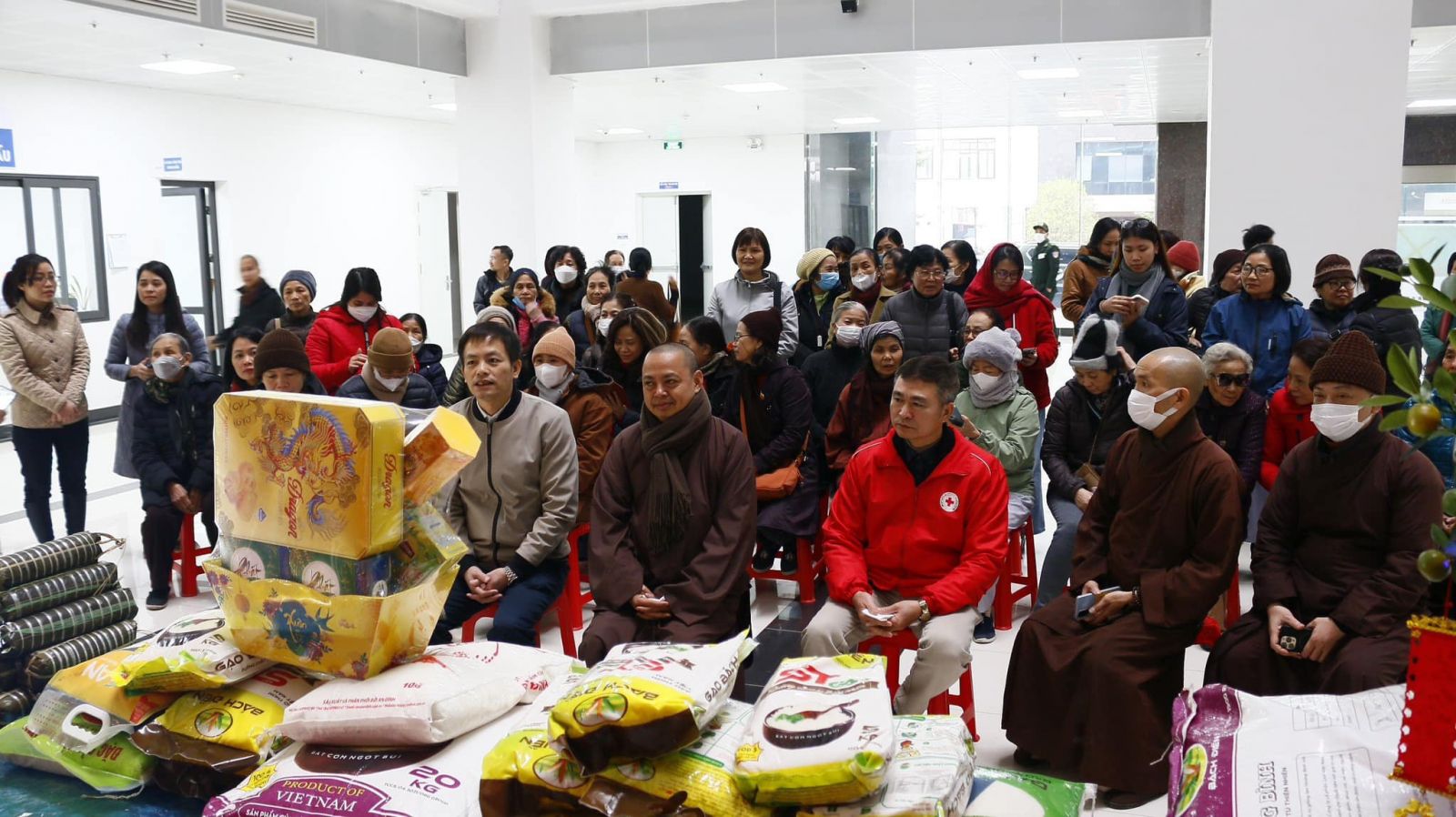 Trong không khí đầm ấm, thân tình, vui tươi, Bệnh viện đã tiếp nhận 310 kg gạo tẻ; 20 chiếc bánh chưng từ Thượng toạ và các đạo tràng. Đây là món quà vô cùng ý nghĩa, có tính nhân văn sâu sắc thể hiện tinh thần "Tương thân tương ái" giữa người với người trong mỗi dịp Tết đến Xuân về.