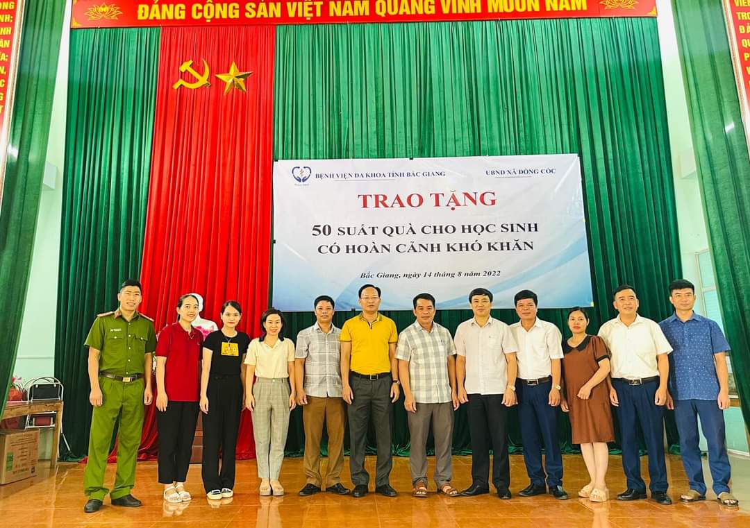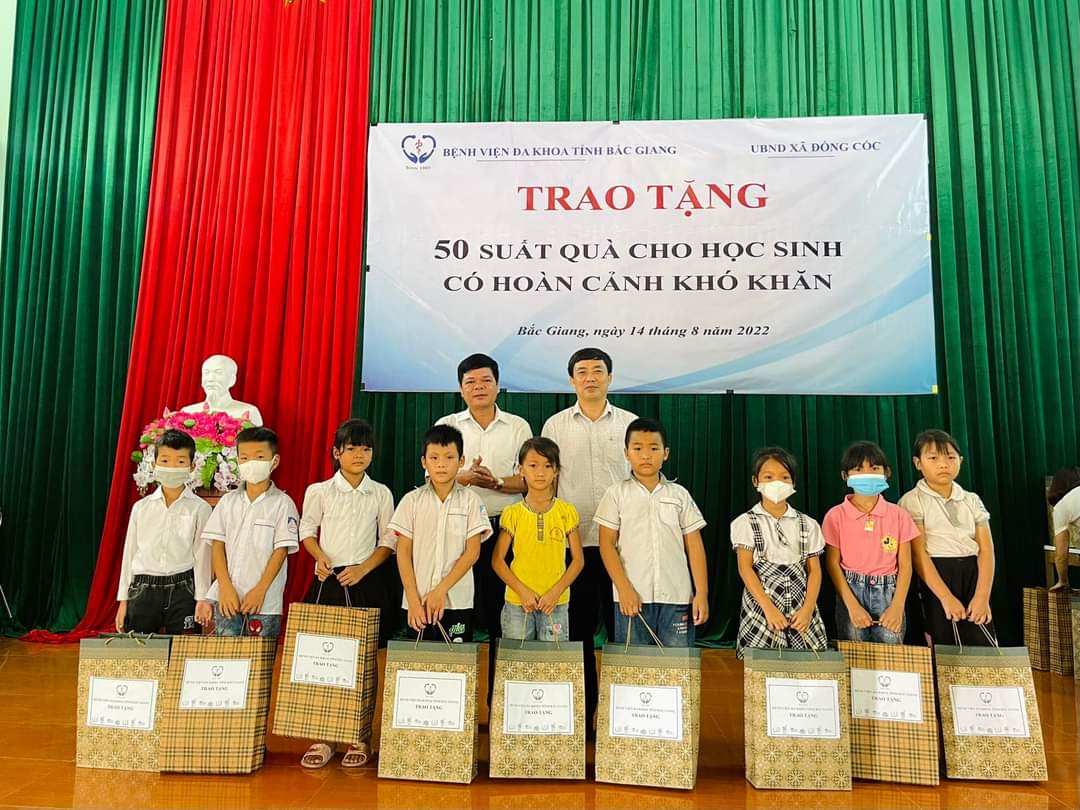 Đồng Cốc là xã miền núi với 84% dân số là người dân tộc thiểu số, sinh sống bằng sản xuất nông nghiệp là chủ yếu. Mặc dù nhiều năm qua, chính quyền địa phương đã tạo điều kiện để phát triển và nâng cao chất lượng giáo dục song vẫn còn nhiều khó khăn. Nhằm chia sẻ phần nào với chính quyền và nhân dân địa phương đồng thời động viên tinh thần đối với các em học sinh nghèo vượt khó và học sinh có hoàn cảnh khó khăn, tiếp tục cố gắng phấn đấu vươn lên trong học tập, rèn luyện trong năm học mới. Phòng Công tác xã hội đại diện cho Bệnh viện Đa khoa tỉnh đã động viên và trao tặng 50 suất quà mỗi suất quà trị giá 300 nghìn đồng, gồm cặp sách, vở, áo mưa, đồ dùng học tập tới các em học sinh. Đồng thời, 2 thùng sách giáo khoa cũng được gửi tặng đến nhà trường. Số quà tặng trên từ sự đóng góp, ủng hộ của toàn thể cán bộ, viên chức, người lao động Bệnh viện.