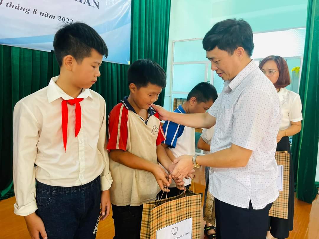 Sáng ngày 14/8/2022, đoàn cán bộ, nhân viên Bệnh viện Đa khoa tỉnh đã tới thăm và trao quà cho các em học sinh có hoàn cảnh có khăn trên địa bàn xã Đồng Cốc, huyện Lục Ngạn. Bs.CKII Hoàng Chí Thành, Phó Giám đốc bệnh viện là trưởng đoàn.