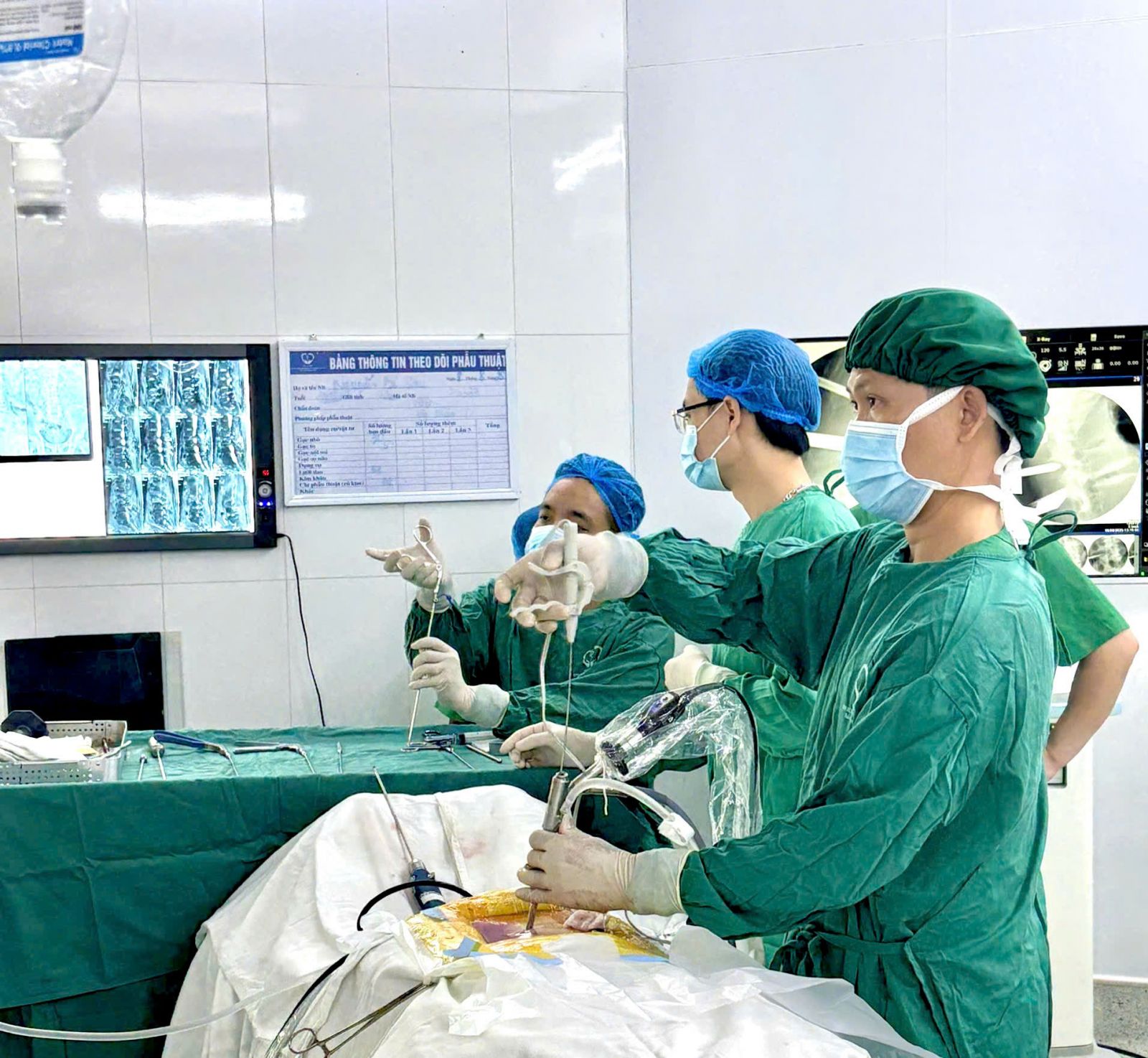 Ngày 8/8/2025, ca phẫu thuật được thực hiện bởi BS CKII Mạc Hoàng Dương – Trưởng khoa Ngoại thần kinh, với sự hỗ trợ chuyên môn của ThS BS Lương Minh Quang – chuyên gia phẫu thuật cột sống, Bệnh viện Xanh Pôn (Hà Nội). Chỉ sau 2 giờ đồng hồ, ca mổ diễn ra thành công.