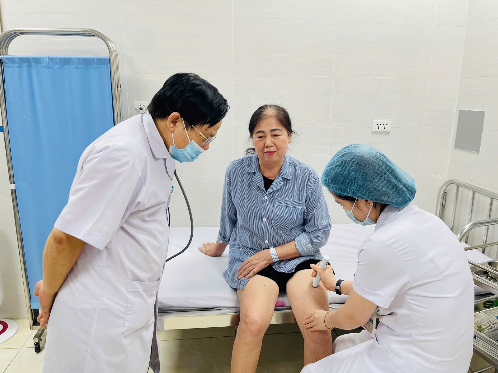 Tại Khoa Nội Thần kinh - Cơ xương khớp, sau khi khám lâm sàng và thực hiện các cận lâm sàng cần thiết như xét nghiệm định lượng CRP, tốc độ lắng máu (ESR), yếu tố thấp RF, Anti-CCP..., các bác sĩ xác định bệnh nhân đang trong đợt tiến triển của viêm khớp dạng thấp. Trước diễn biến lâm sàng nặng, đáp ứng kém với điều trị thông thường, bệnh nhân được chỉ định sử dụng thuốc sinh học Golimumab (tên biệt dược: Simponi) – một kháng thể đơn dòng ức chế yếu tố hoại tử u TNF-alpha – theo đúng phác đồ hiện hành của Bộ Y tế.