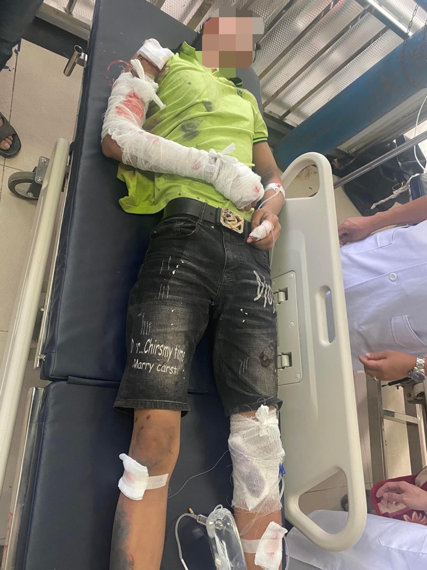 Tại Khoa Cấp cứu bệnh nhân được chẩn đoán bỏng 10% cơ thể do nổ điện thoại và chuyển vào khoa Ngoại lồng ngực- chỉnh hình- bỏng điều trị. Tại khoa các bác sĩ đã hội chẩn chuyên khoa Mắt và xử trí vết bỏng, vết thương phần mềm, dùng kháng sinh và thay băng hàng ngày cho bệnh nhân. Sau 8 ngày điều trị tích cực, bệnh nhân đã hồi phục, mắt nhìn tốt, vết thương khô và được cho xuất viện.