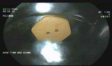Theo lời người nhà bà B kể lại, cách đây vài ngày bệnh nhân bị ho nhiều nên đã tự ngậm một viên đá không rõ nguồn gốc, được quảng cáo là có thể chữa bách bệnh. Khi đang ngậm, vô tình bệnh nhân ngủ quên và nuốt luôn viên ngậm. Khi tỉnh dậy, thấy cổ họng vướng nên người bệnh đã đến bệnh viện.