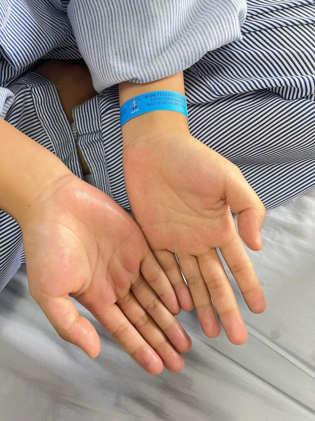 V.T.N.T (17 tuổi, địa chỉ ở Cấm Sơn, Lục Ngạn) có tiền sử hay ra mồ hôi tay từ khi còn là học sinh tiểu học, tuy nhiên vì không để ý nên để việc tăng tiết mồ hôi tay kéo dài đến tận bây giờ. Từ khi lên cấp 3, khối lượng bài vở tăng lên yêu cầu phải tiếp xúc nhiều đến sách vở, bút, giấy, gây ảnh hưởng rất lớn đến quá trình học tập của người bệnh. Đặc biệt, khi xúc động, căng thẳng, mồ hôi ở tay người bệnh chảy thành giọt, có đôi khi phải dùng khăn lau liên tục bởi tay luôn ẩm ướt, điều này khiến người bệnh vô cùng áp lực và khó chịu. Ngày 29/8/2022, người bệnh đã đến Bệnh viện Đa khoa tỉnh Bắc Giang để thăm khám và điều trị. Các bác sĩ tại Khoa Ngoại lồng ngực chỉnh hình- bỏng chẩn đoán bệnh nhân gặp chứng rối loạn tăng tiết mồ hôi tay.