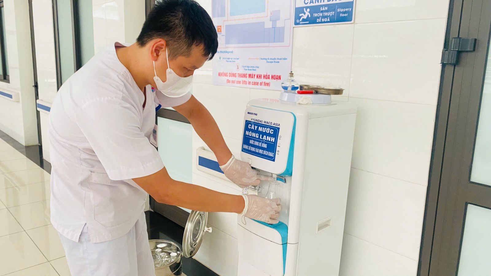 Ảnh: Một số vị trí lấy mẫu xét nghiệm vi sinh: cây nước uống, bàn tay NVYT, tường nhà mổ,....