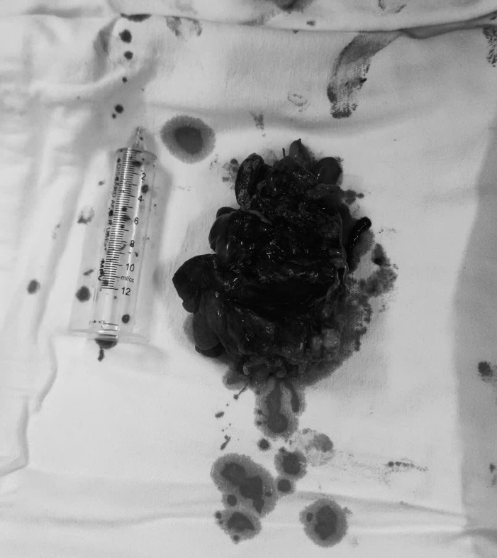 Ảnh 1. Đoạn trực tràng hoại tử được loại bỏ