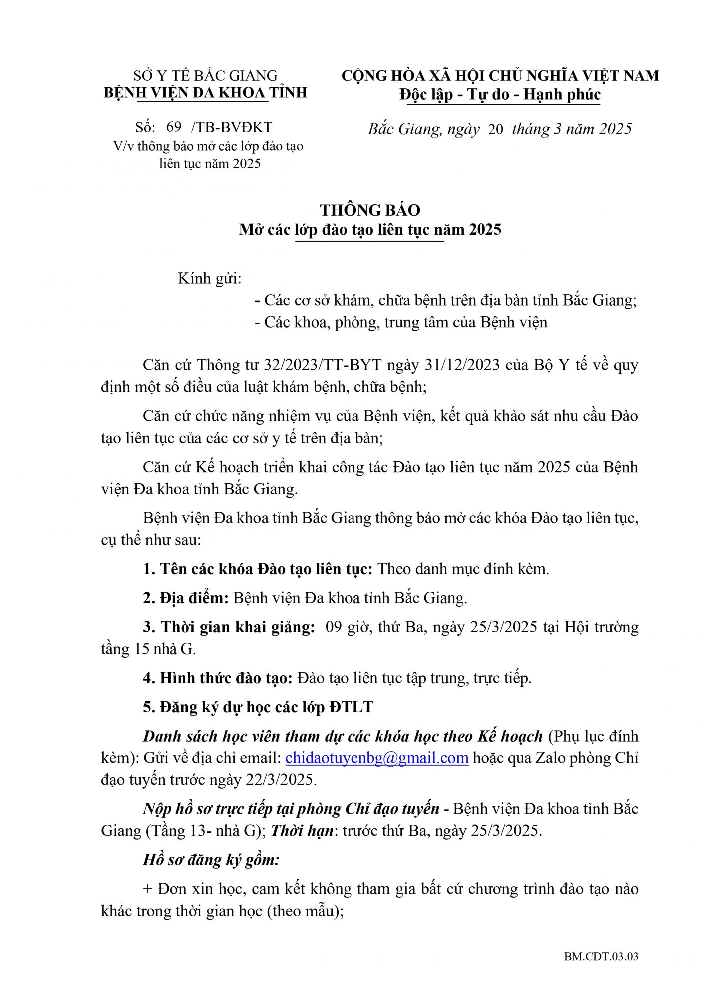 Thứ 7, 22/03/2025 | 10:52 A- A A+ | Thông báo mở các lớp đào tạo liên tục năm 2025 Đọc bài Lưu Tổng số điểm của bài viết là: 0 trong 0 đánh giá Click để đánh giá bài viết