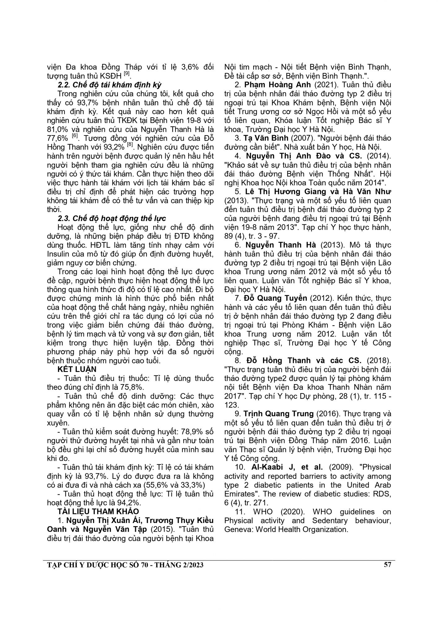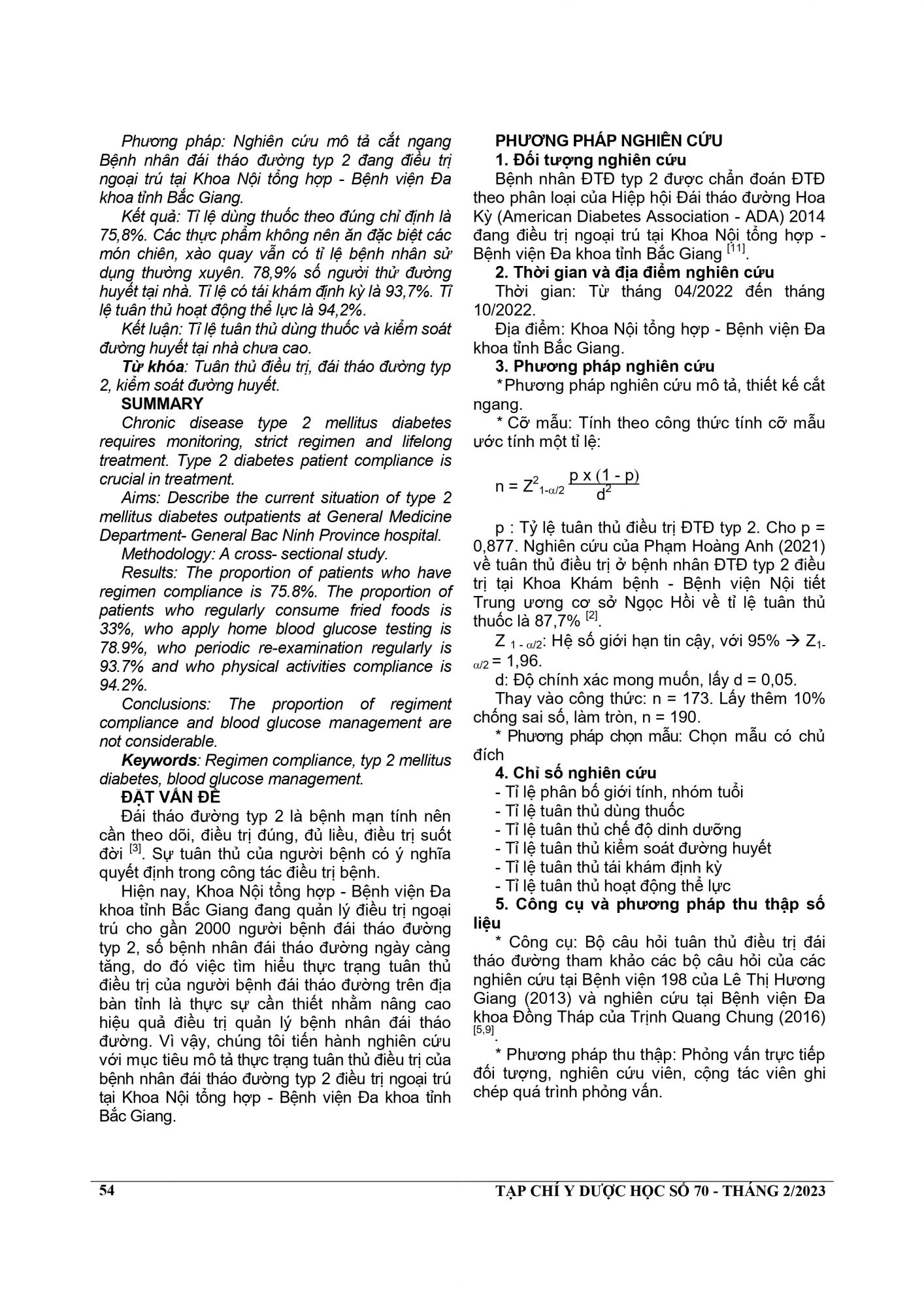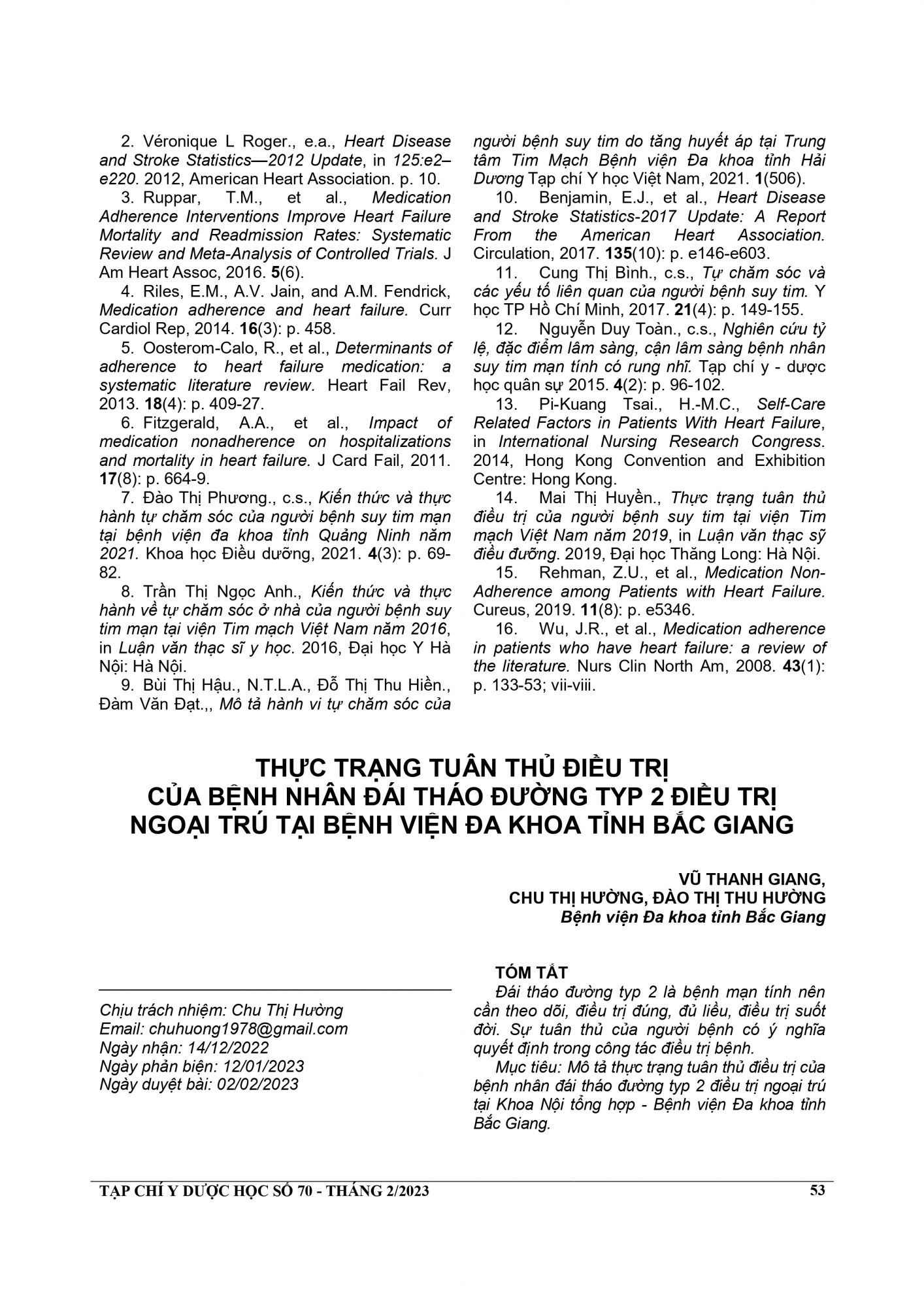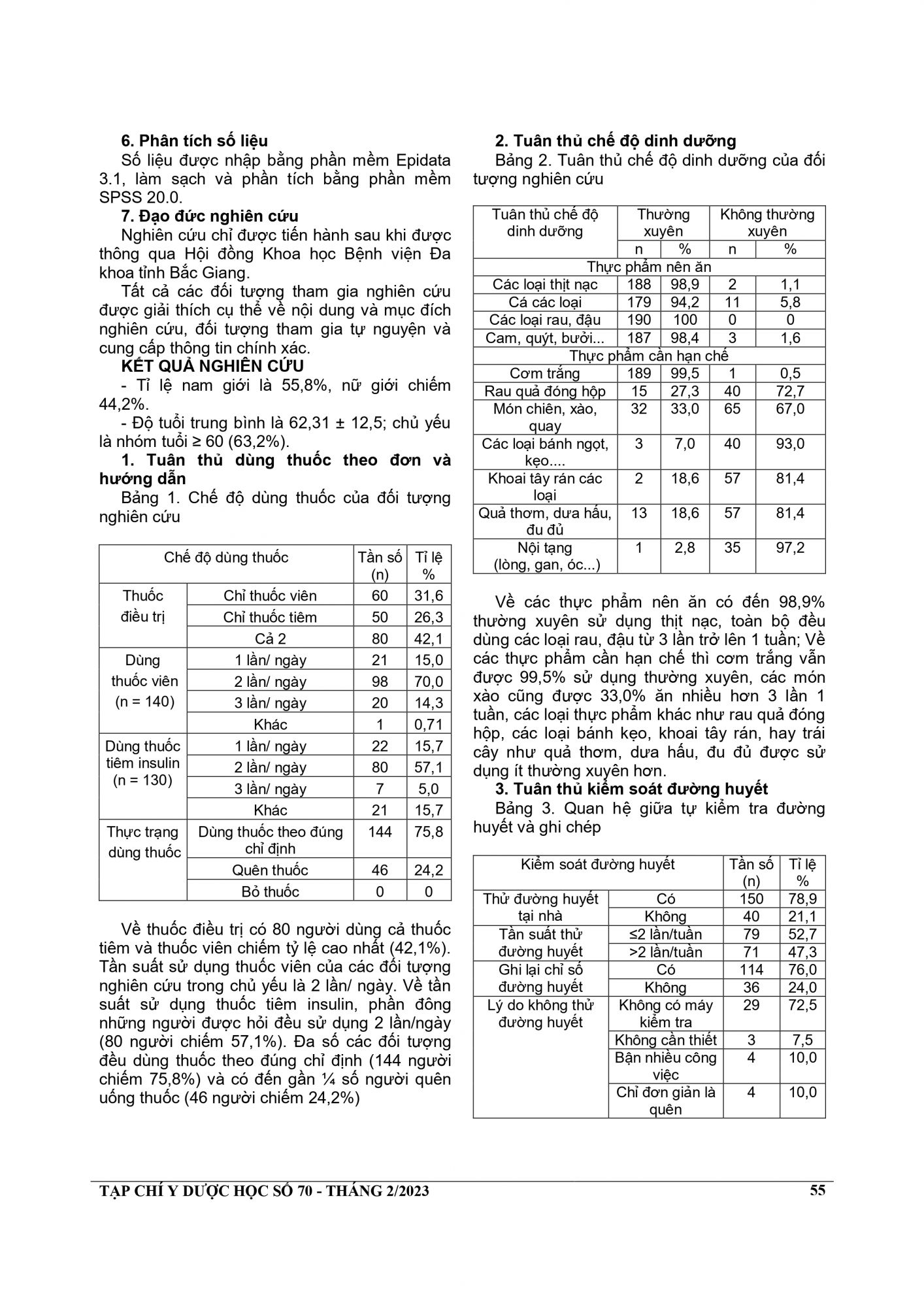Thực trạng tuân thủ điều trị của bệnh nhân Đái thào đường typ 2 điều trị ngoại trú tại Bệnh viện Đa khoa tỉnh Bắc Giang