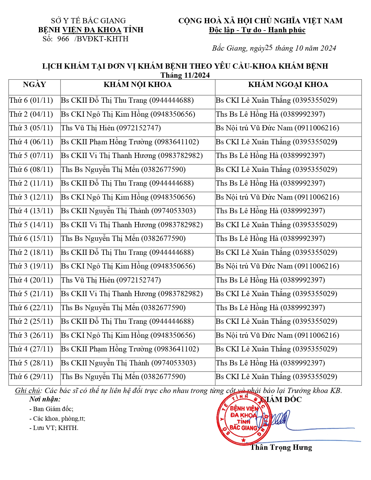 Thứ 6, 25/10/2024 | 07:13 A- A A+ | LỊCH KHÁM YÊU CẦU THÁNG 11/2024 Đọc bài Lưu Tổng số điểm của bài viết là: 0 trong 0 đánh giá Click để đánh giá bài viết