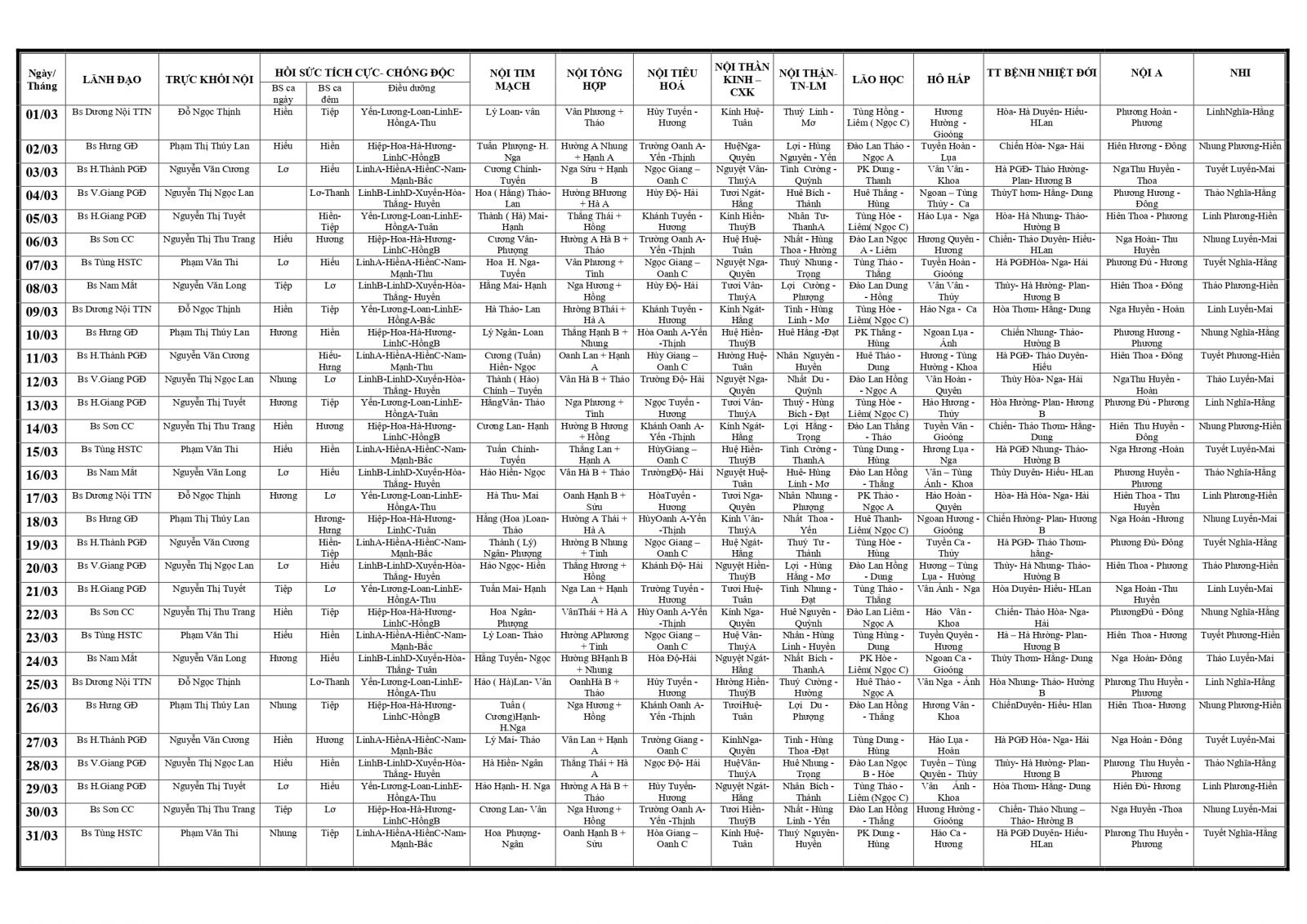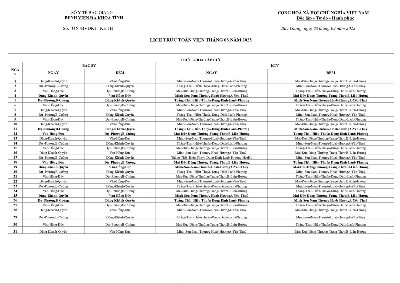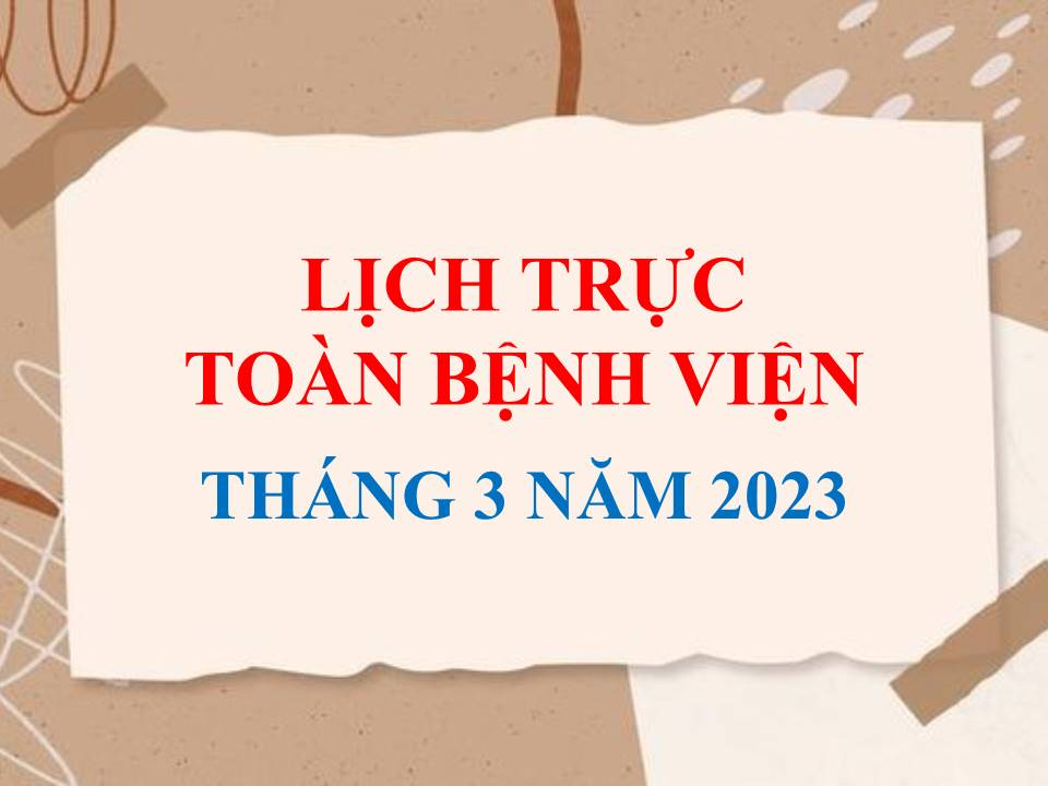 LỊCH TRỰC TOÀN BỆNH VIỆN T03-2023