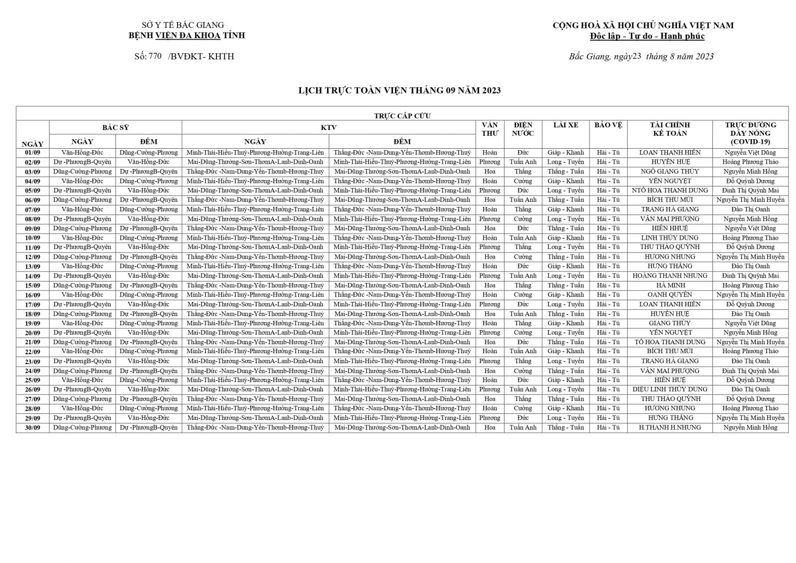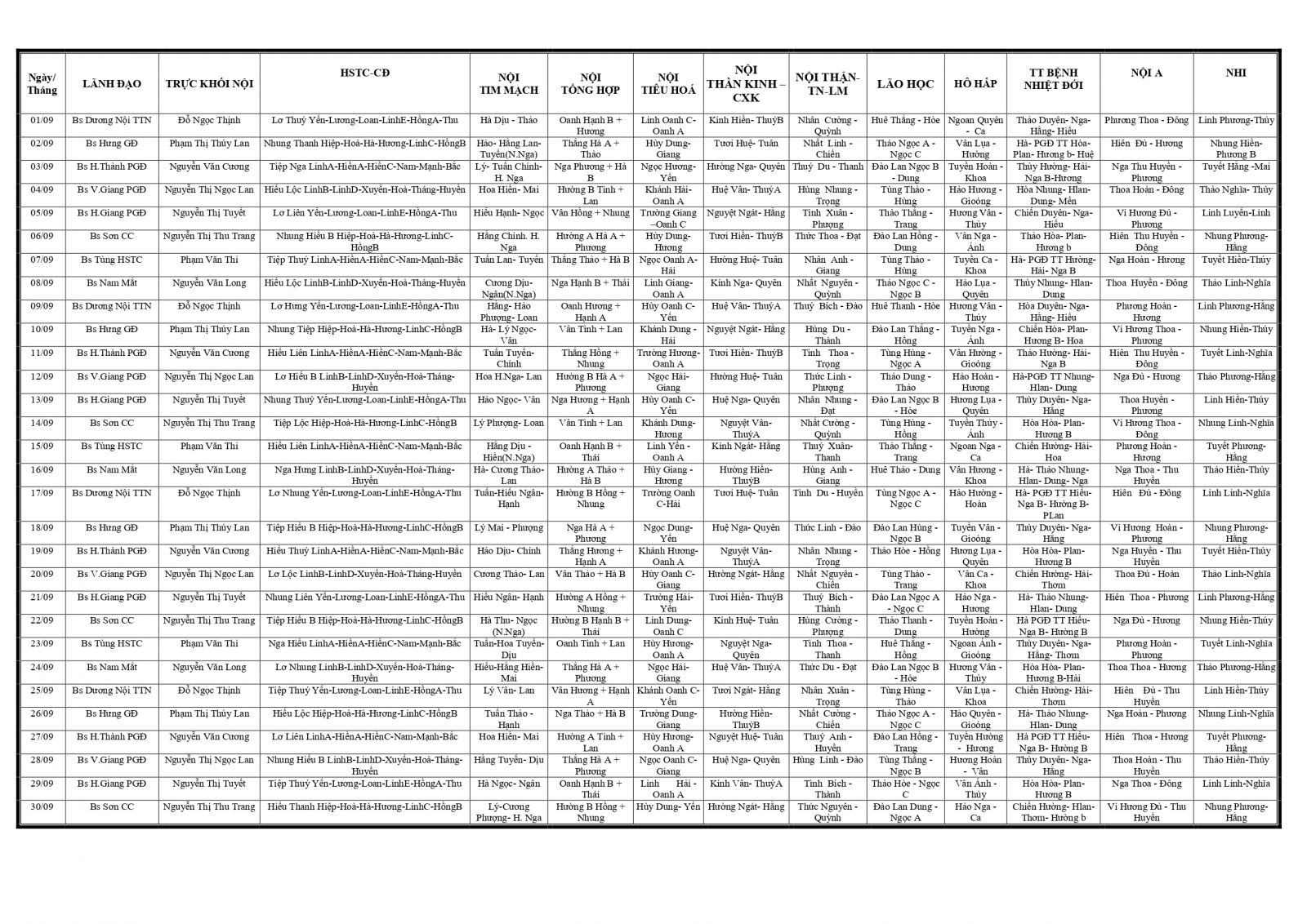 Thứ 4, 23/08/2023 | 11:17 A- A A+ | LỊCH TRỰC TOÀN BỆNH VIỆN T09/2023 Đọc bài Lưu Tổng số điểm của bài viết là: 0 trong 0 đánh giá Click để đánh giá bài viết
