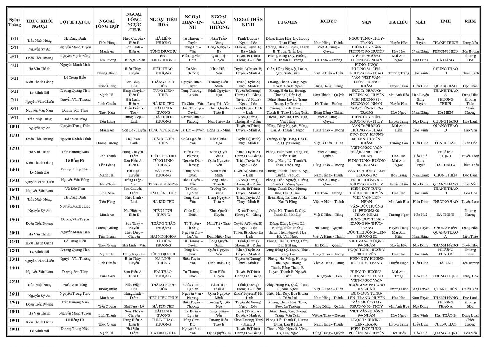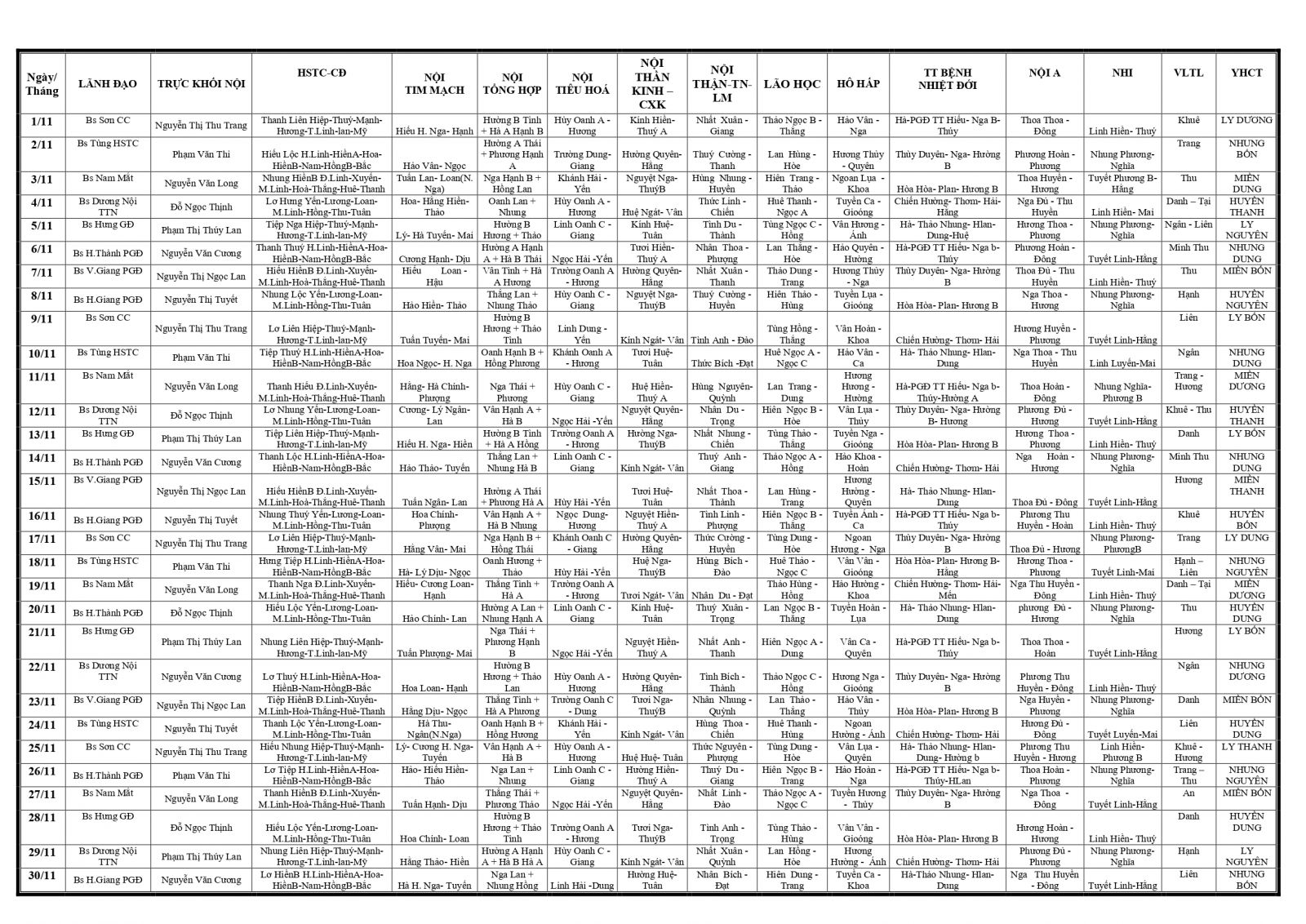 Thứ 4, 25/10/2023 | 13:57 A- A A+ | LỊCH TRỰC TOÀN BỆNH VIỆN T11/2023 Đọc bài Lưu Tổng số điểm của bài viết là: 0 trong 0 đánh giá Click để đánh giá bài viết