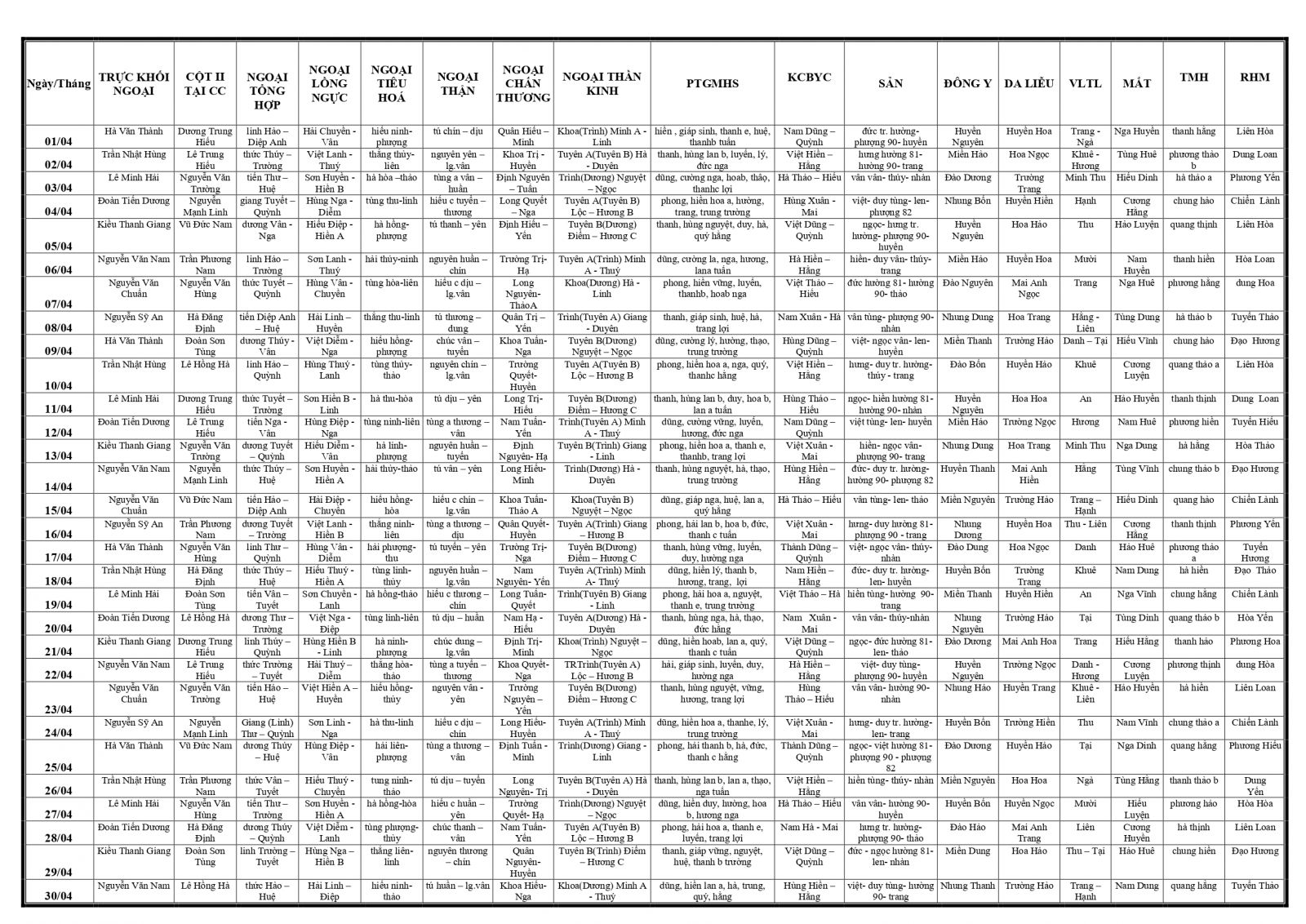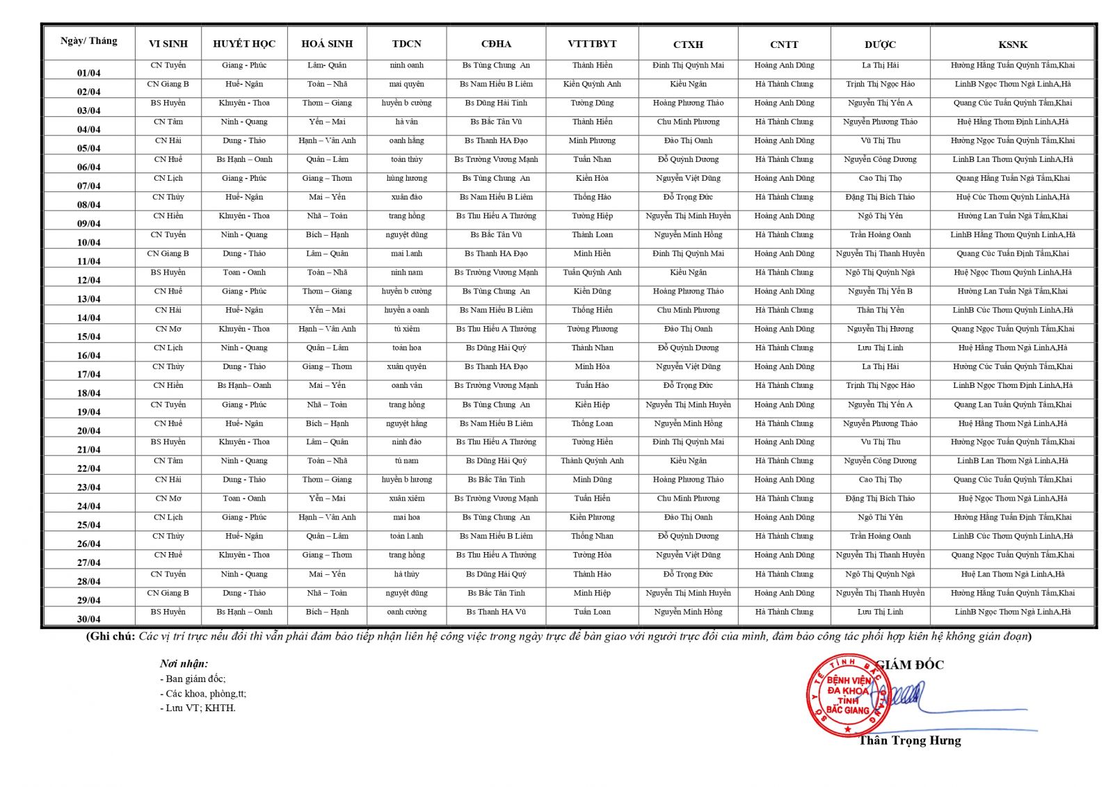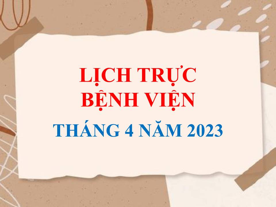Thứ 6, 31/03/2023 | 07:28 A- A A+ | Lịch trực toàn viện tháng 04-2023 Đọc bài Lưu Tổng số điểm của bài viết là: 0 trong 0 đánh giá Click để đánh giá bài viết