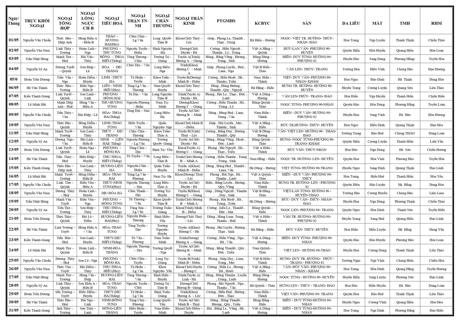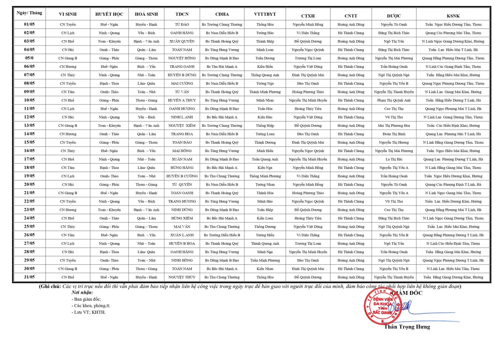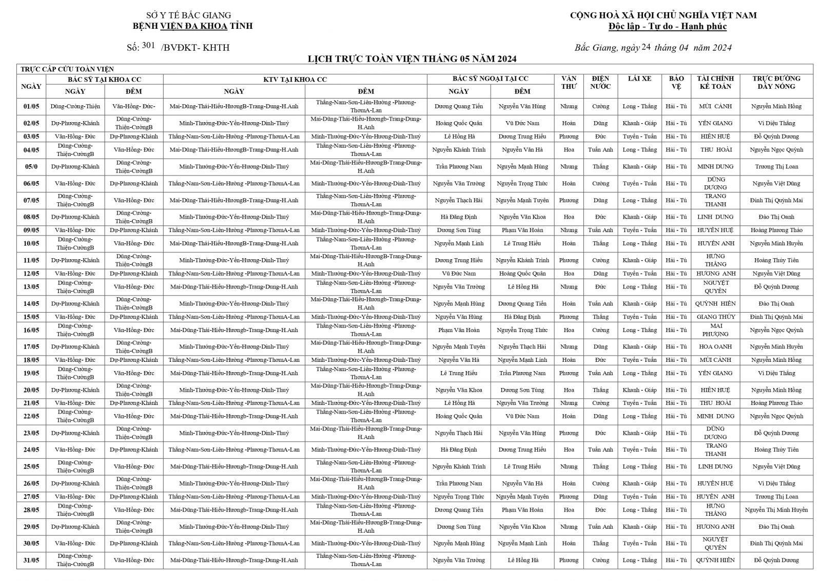Thứ 4, 24/04/2024 | 08:33 A- A A+ | Lịch trực toàn viện tháng 05/2024 Đọc bài Lưu Tổng số điểm của bài viết là: 0 trong 0 đánh giá Click để đánh giá bài viết