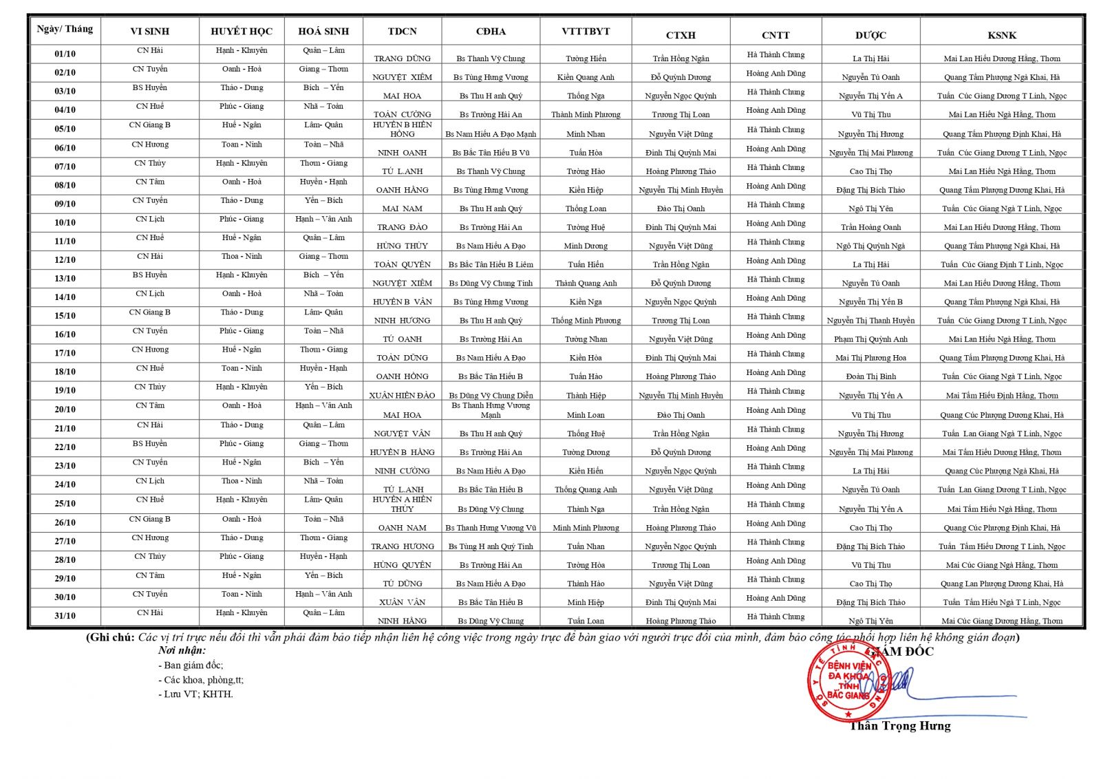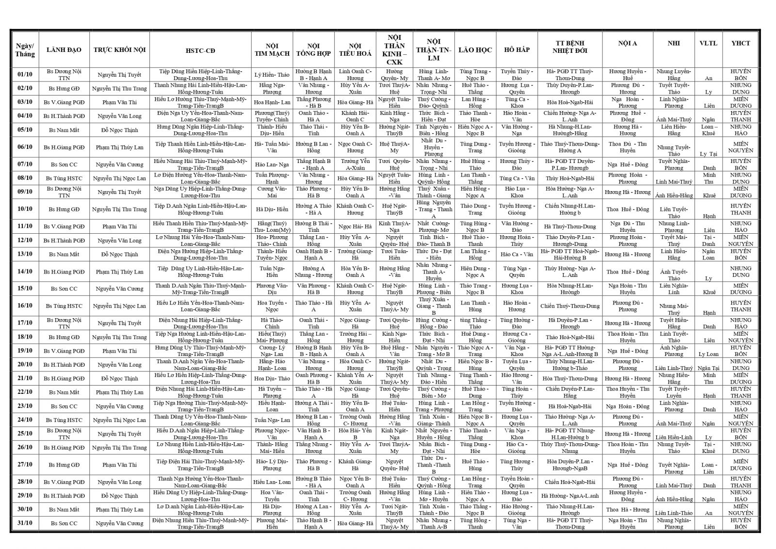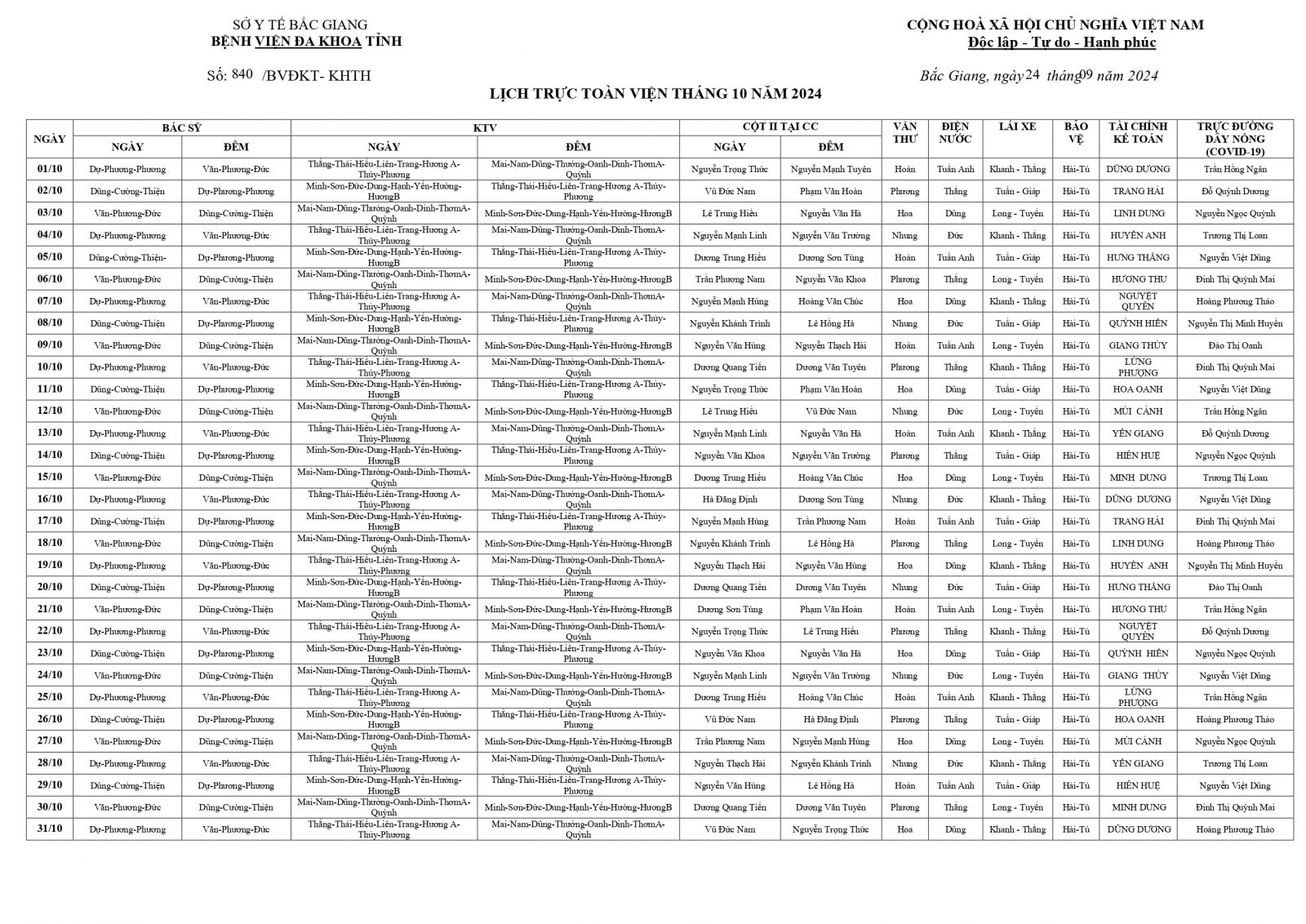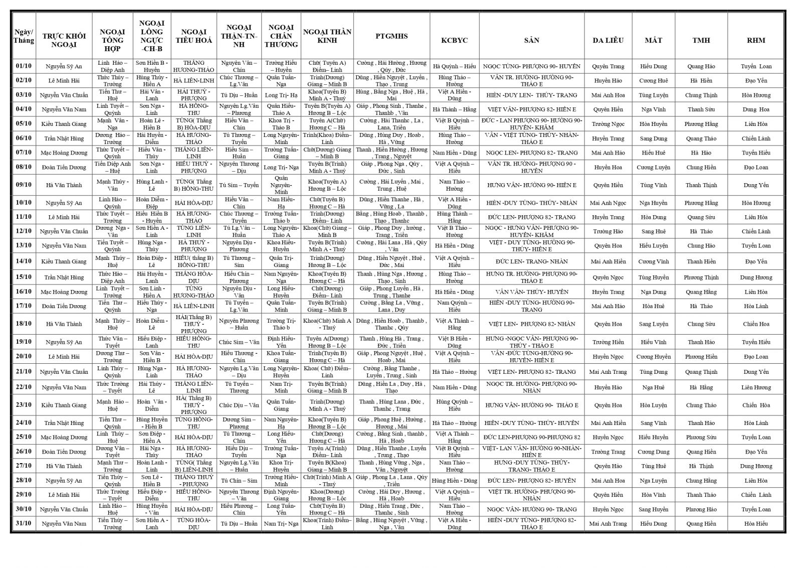 Thứ 3, 24/09/2024 | 07:13 A- A A+ | LỊCH TRỰC TOÀN VIỆN THÁNG 10/2024 Đọc bài Lưu Tổng số điểm của bài viết là: 0 trong 0 đánh giá Click để đánh giá bài viết