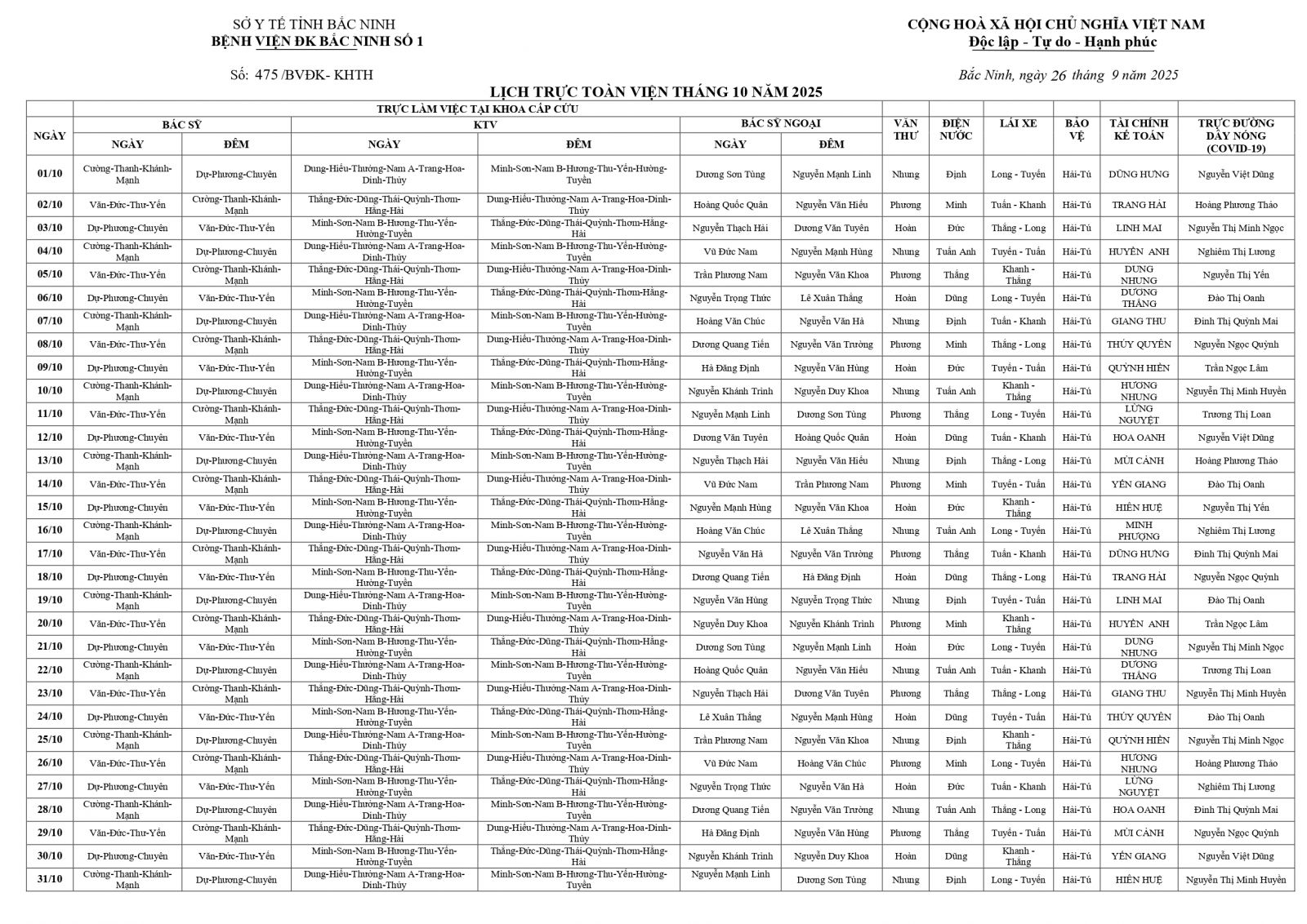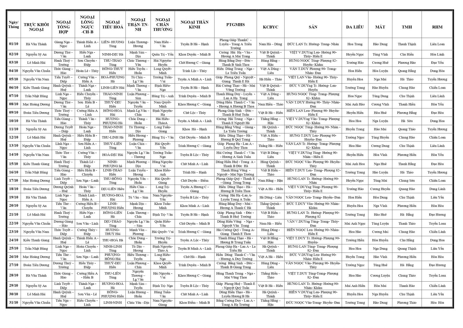 Thứ 6, 26/09/2025 | 14:42 A- A A+ | LỊCH TRỰC TOÀN VIỆN THÁNG 10/2025 Đọc bài Lưu Tổng số điểm của bài viết là: 0 trong 0 đánh giá Click để đánh giá bài viết
