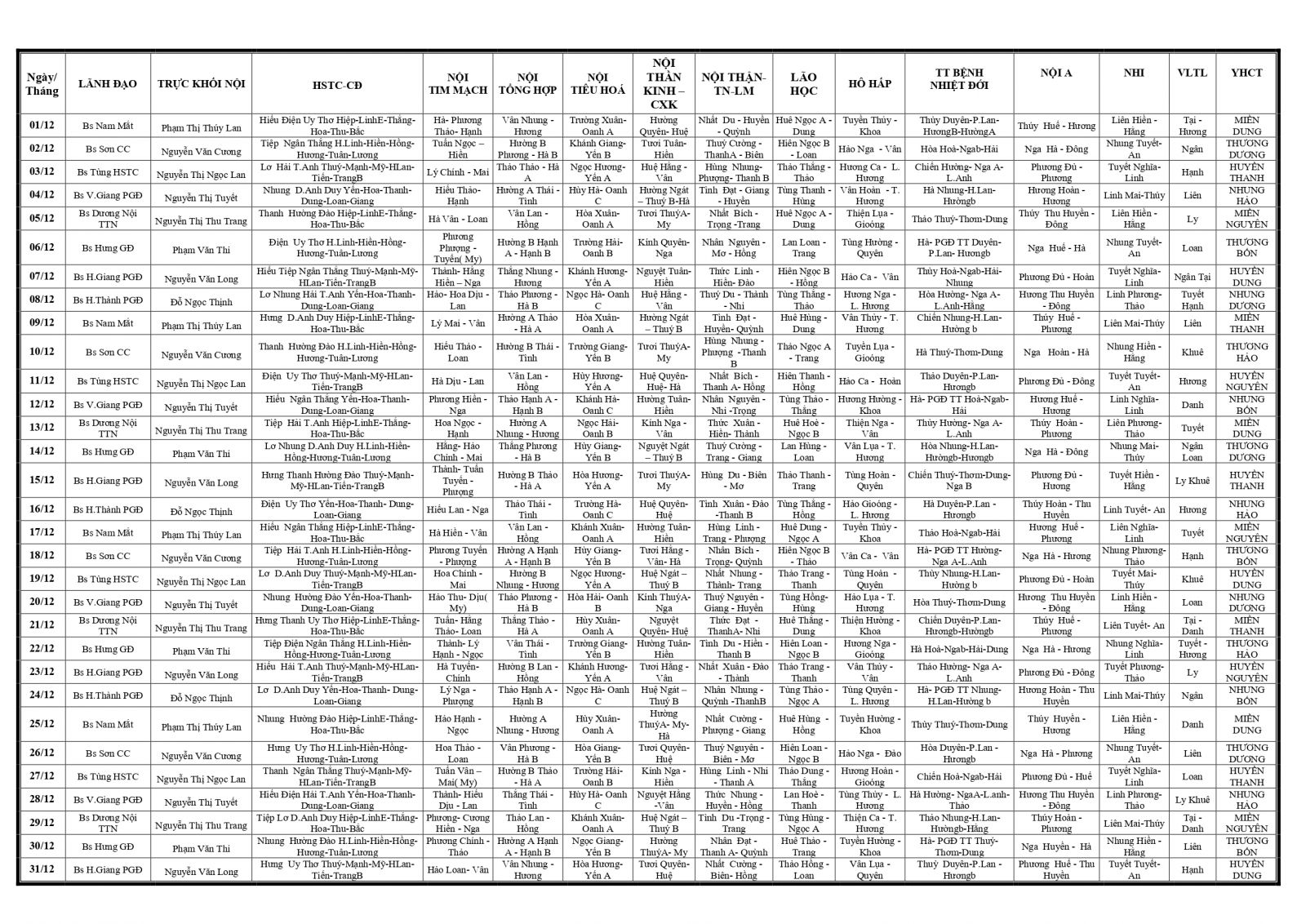 Thứ 4, 27/11/2024 | 09:15 A- A A+ | LỊCH TRỰC TOÀN VIỆN THÁNG 12/2024 Đọc bài Lưu Tổng số điểm của bài viết là: 0 trong 0 đánh giá Click để đánh giá bài viết