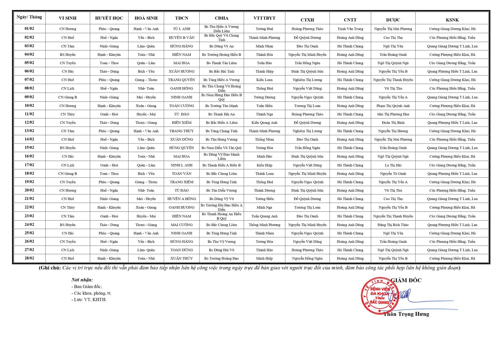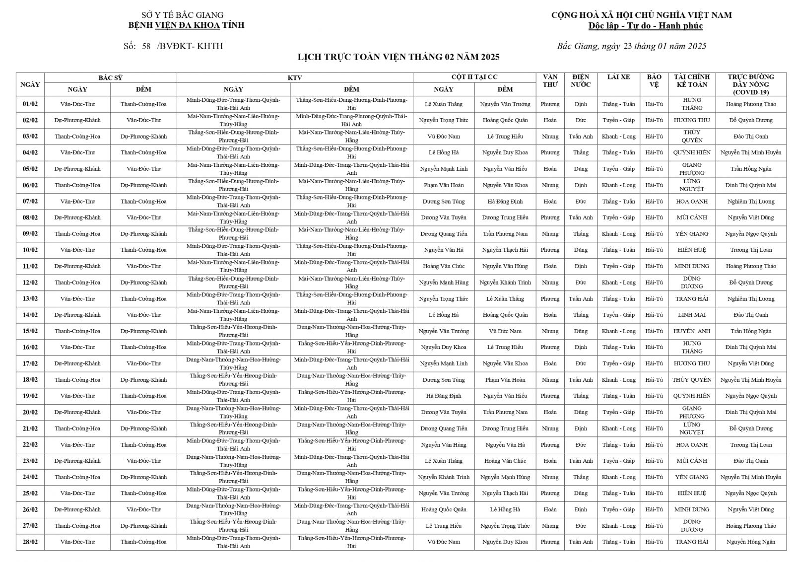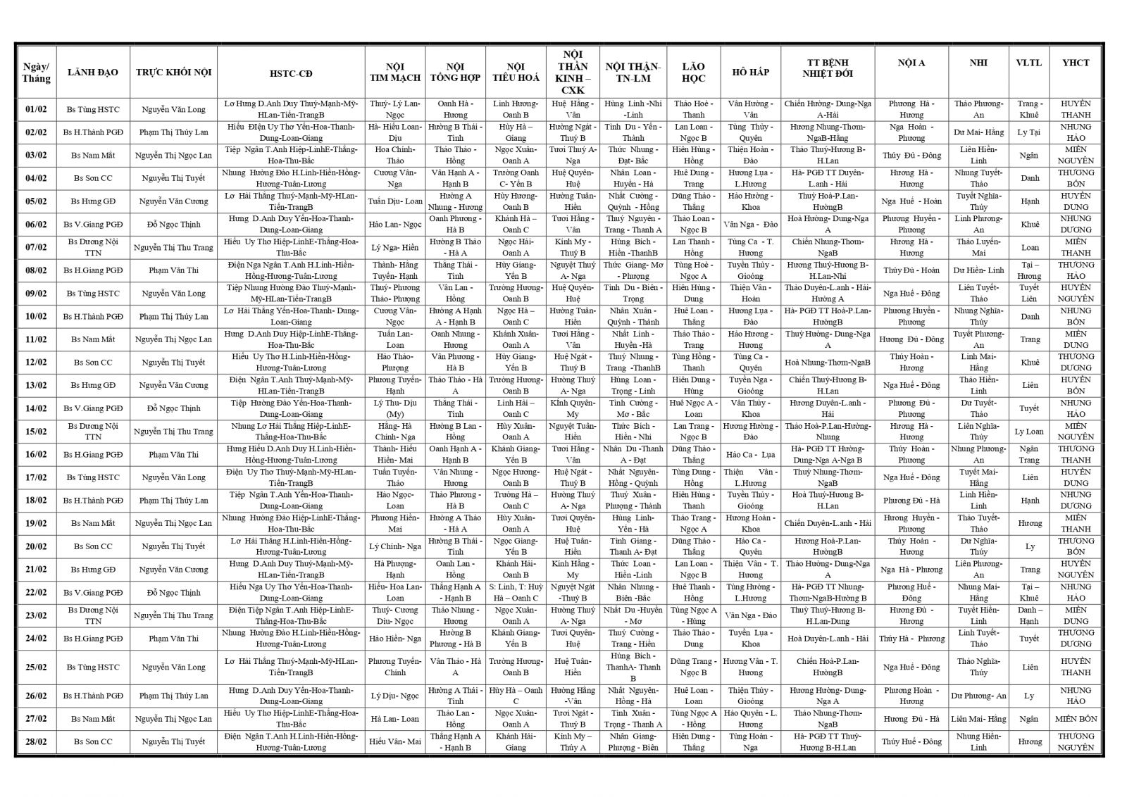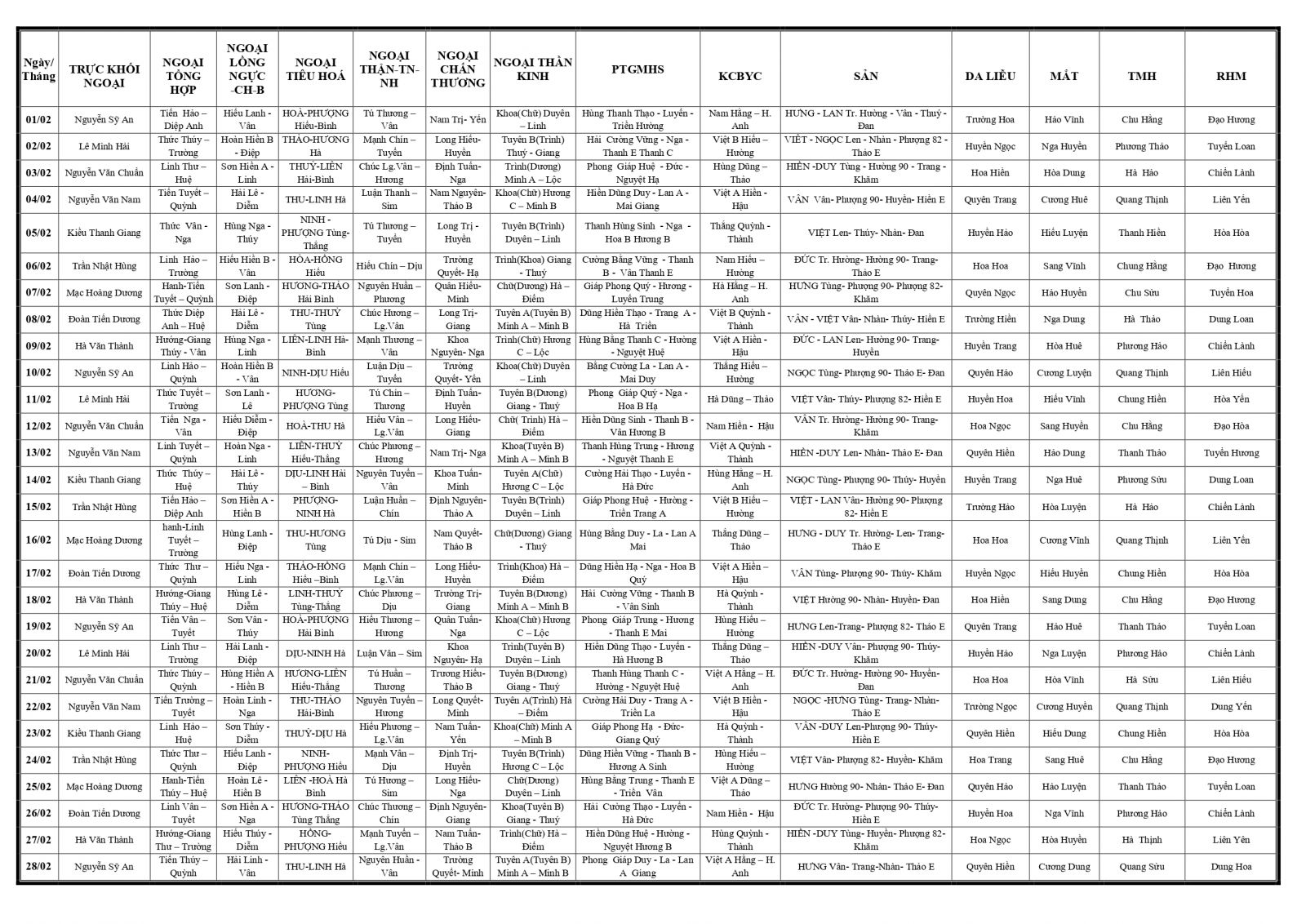 Thứ 5, 23/01/2025 | 09:20 A- A A+ | LỊCH TRỰC TOÀN VIỆN THÁNG 2/2025 Đọc bài Lưu Tổng số điểm của bài viết là: 0 trong 0 đánh giá Click để đánh giá bài viết