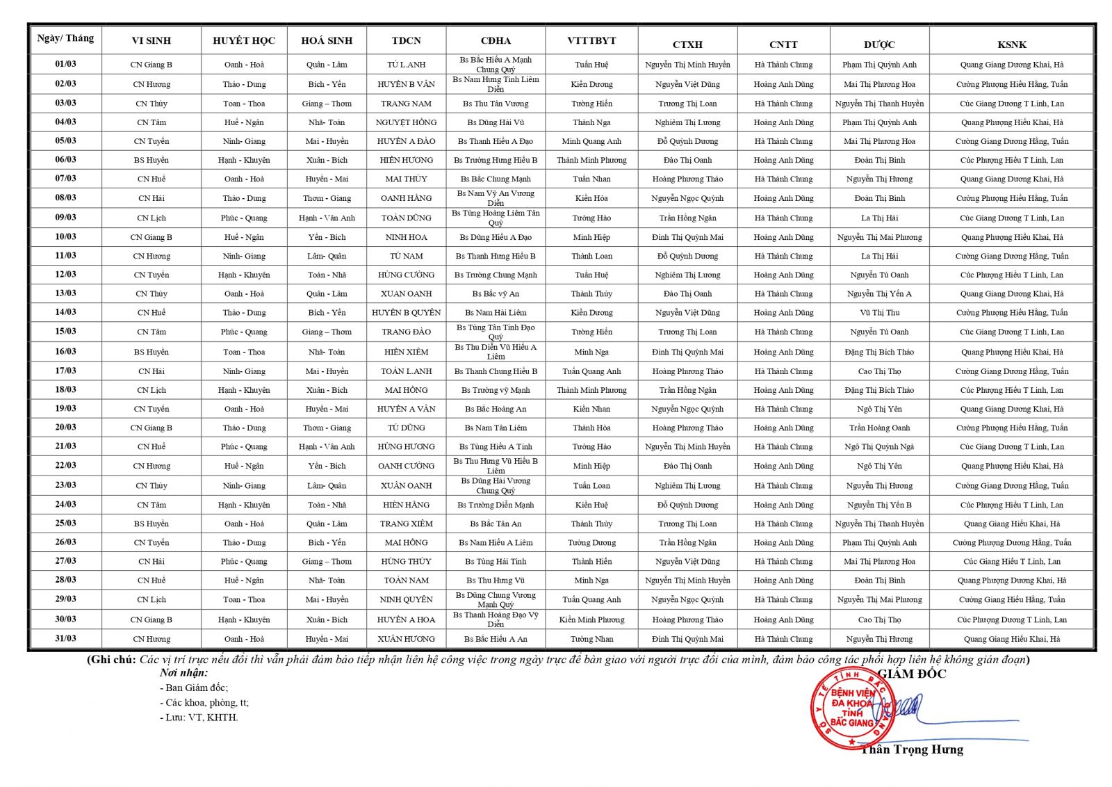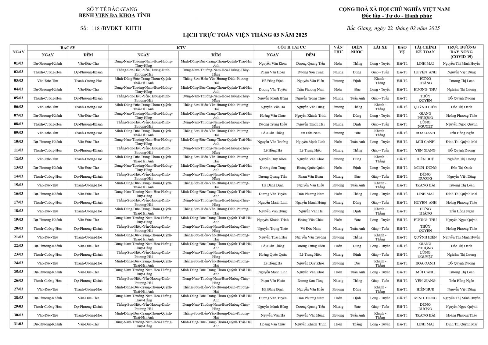 Thứ 2, 24/03/2025 | 09:20 A- A A+ | LỊCH TRỰC TOÀN VIỆN THÁNG 3/2025 Đọc bài Lưu Tổng số điểm của bài viết là: 0 trong 0 đánh giá Click để đánh giá bài viết