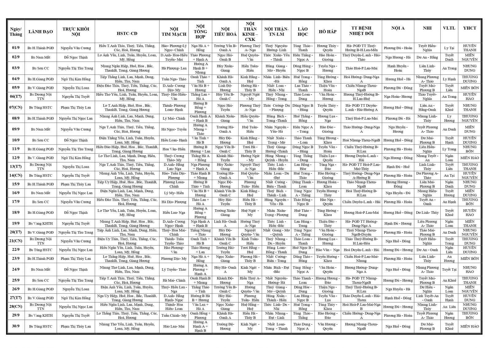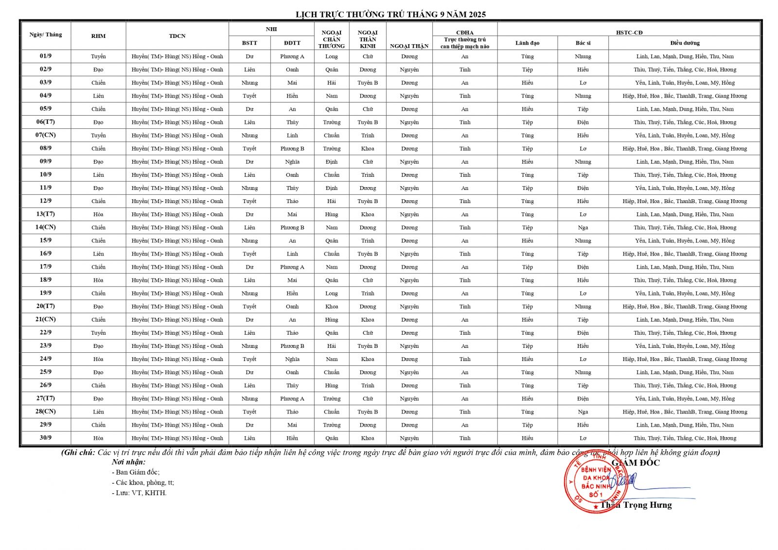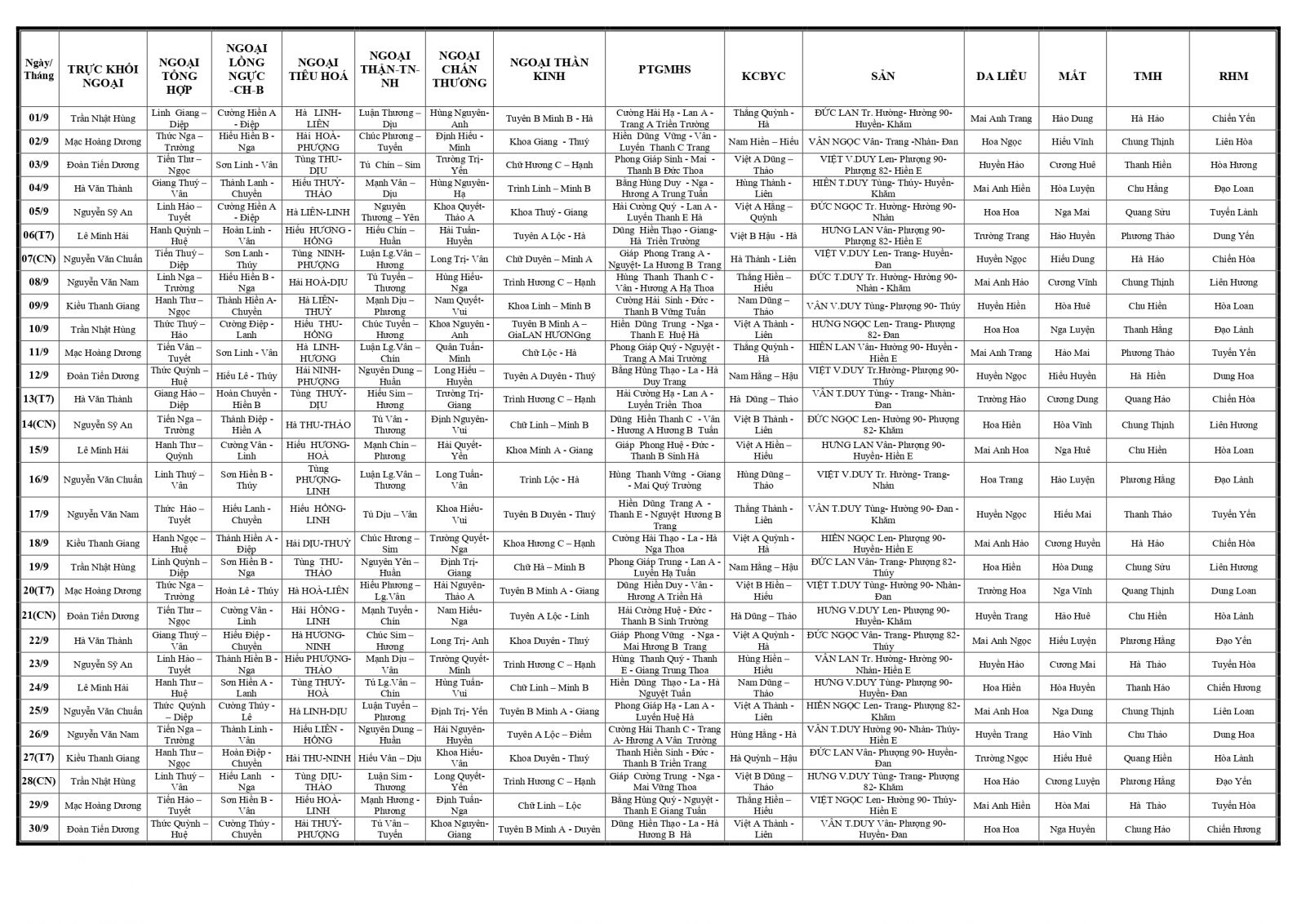 Thứ 4, 27/08/2025 | 11:18 A- A A+ | LỊCH TRỰC TOÀN VIỆN THÁNG 9/2025 Đọc bài Lưu Tổng số điểm của bài viết là: 0 trong 0 đánh giá Click để đánh giá bài viết