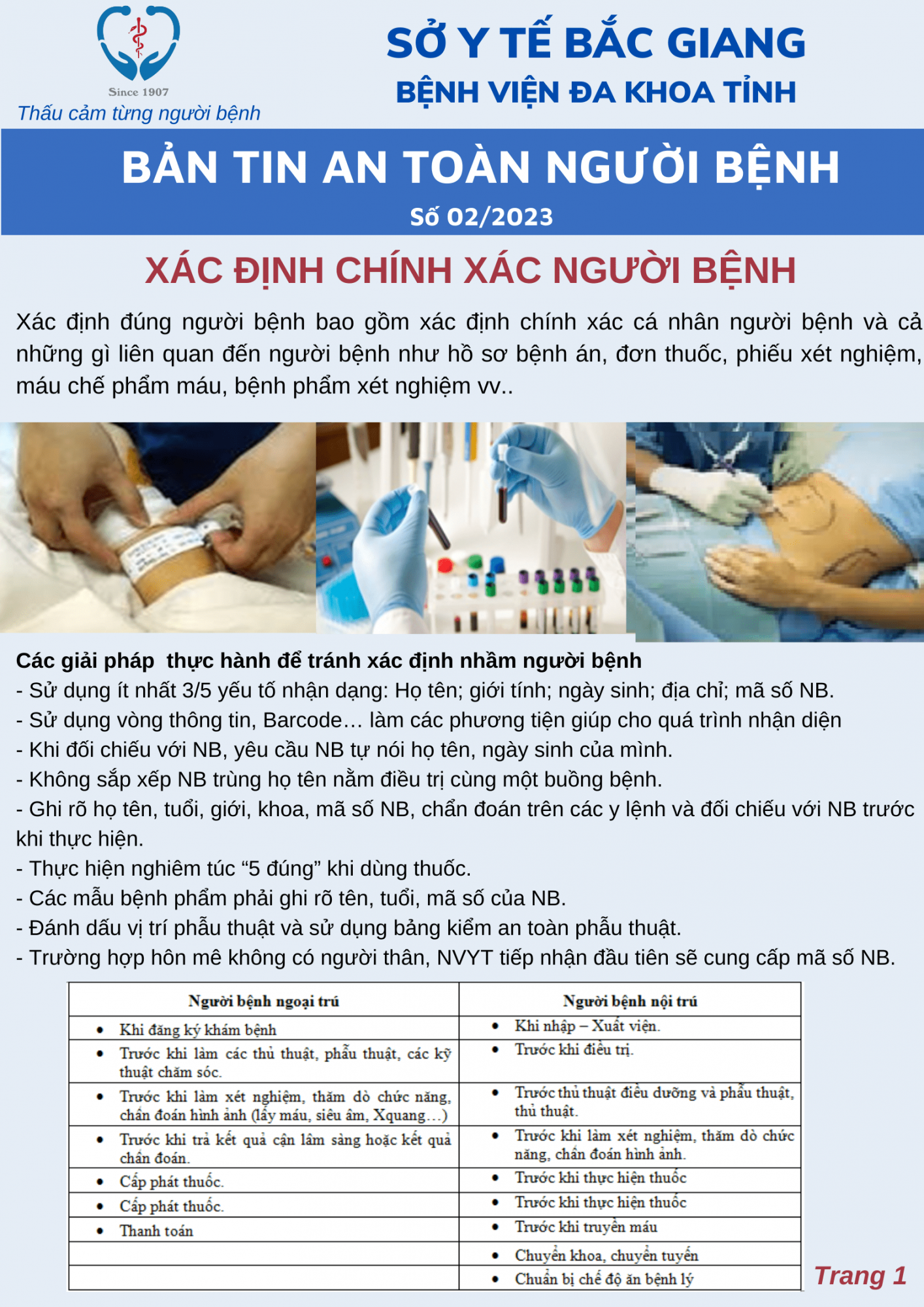 Thứ 2, 24/07/2023 | 08:51 A- A A+ | Bản tin an toàn người bệnh số 02/2023 Đọc bài Lưu Tổng số điểm của bài viết là: 0 trong 0 đánh giá Click để đánh giá bài viết