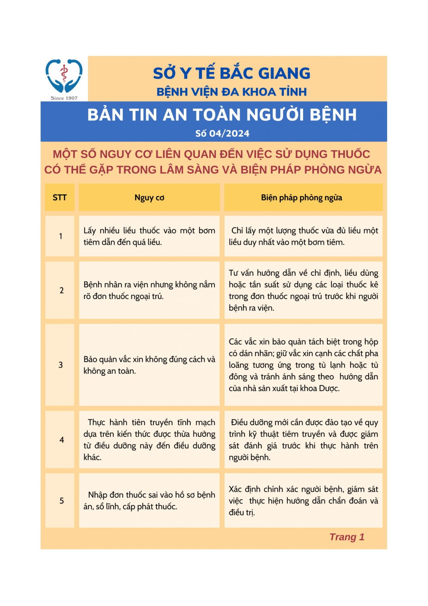 Thứ 7, 02/11/2024 | 14:57 A- A A+ | Bản tin an toàn người bệnh số 4 Đọc bài Lưu Tổng số điểm của bài viết là: 0 trong 0 đánh giá Click để đánh giá bài viết