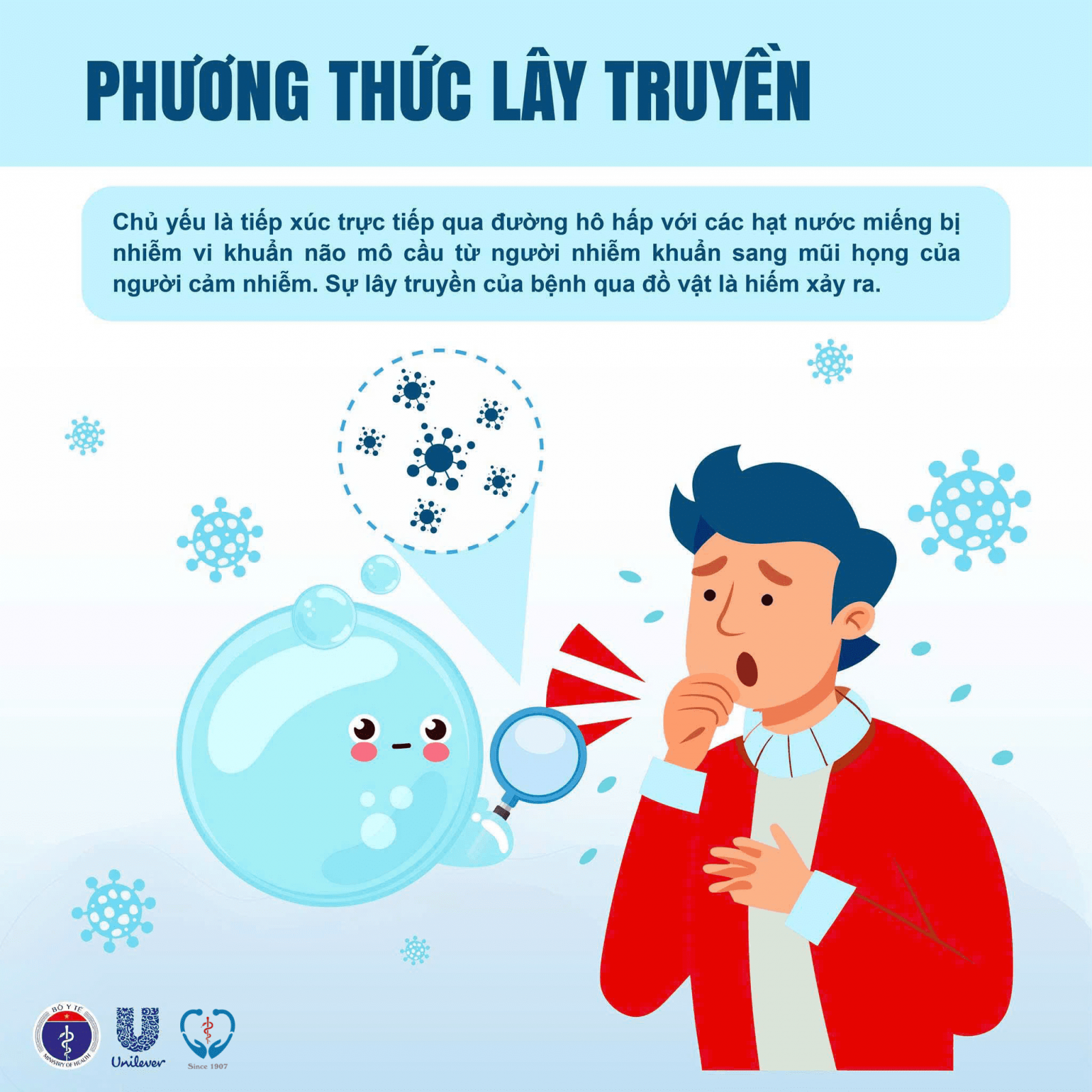 - Thời kỳ lây truyền: Vi khuẩn tồn tại ở vùng mũi họng người nhiễm, có thể lây cho người khác cho đến khi được điều trị bằng kháng sinh (vi khuẩn thường biến mất sau 24 giờ điều trị).