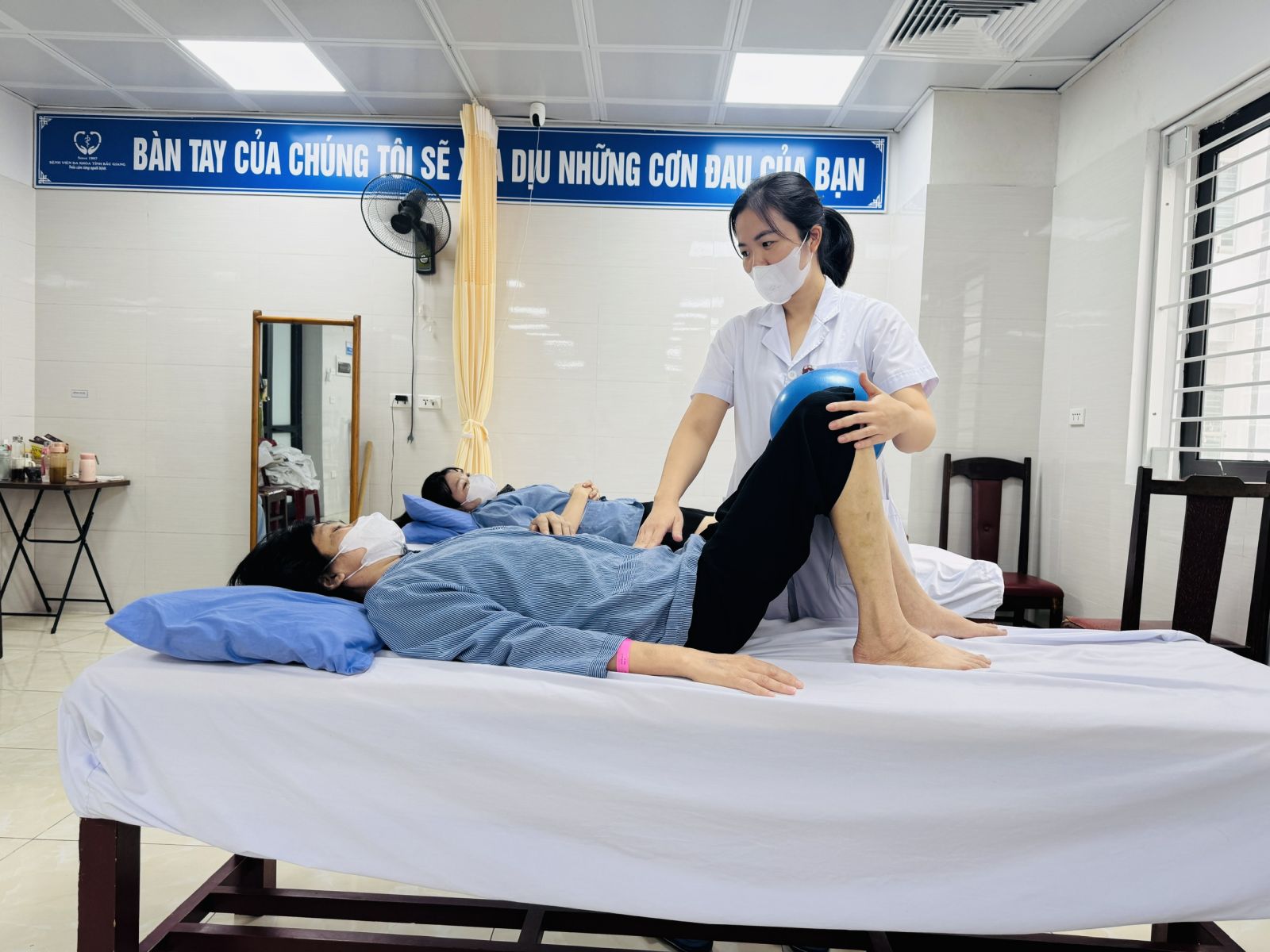👉 Trường hợp điển hình: Bà Trần Thị V. (71 tuổi, Trường Sơn, Bắc Ninh) nhập viện với chẩn đoán thoát vị đĩa đệm cột sống thắt lưng chèn ép đuôi ngựa . Khi vào viện, bệnh nhân tiểu không tự chủ, phải thường xuyên dùng bỉm cả ngày lẫn đêm . Sau quá trình điều trị kết hợp tập luyện phục hồi chức năng sàn chậu tại khoa, tình trạng kiểm soát đại – tiểu tiện của bệnh nhân đã cải thiện rõ rệt, chất lượng cuộc sống và tâm lý được nâng cao đáng kể.