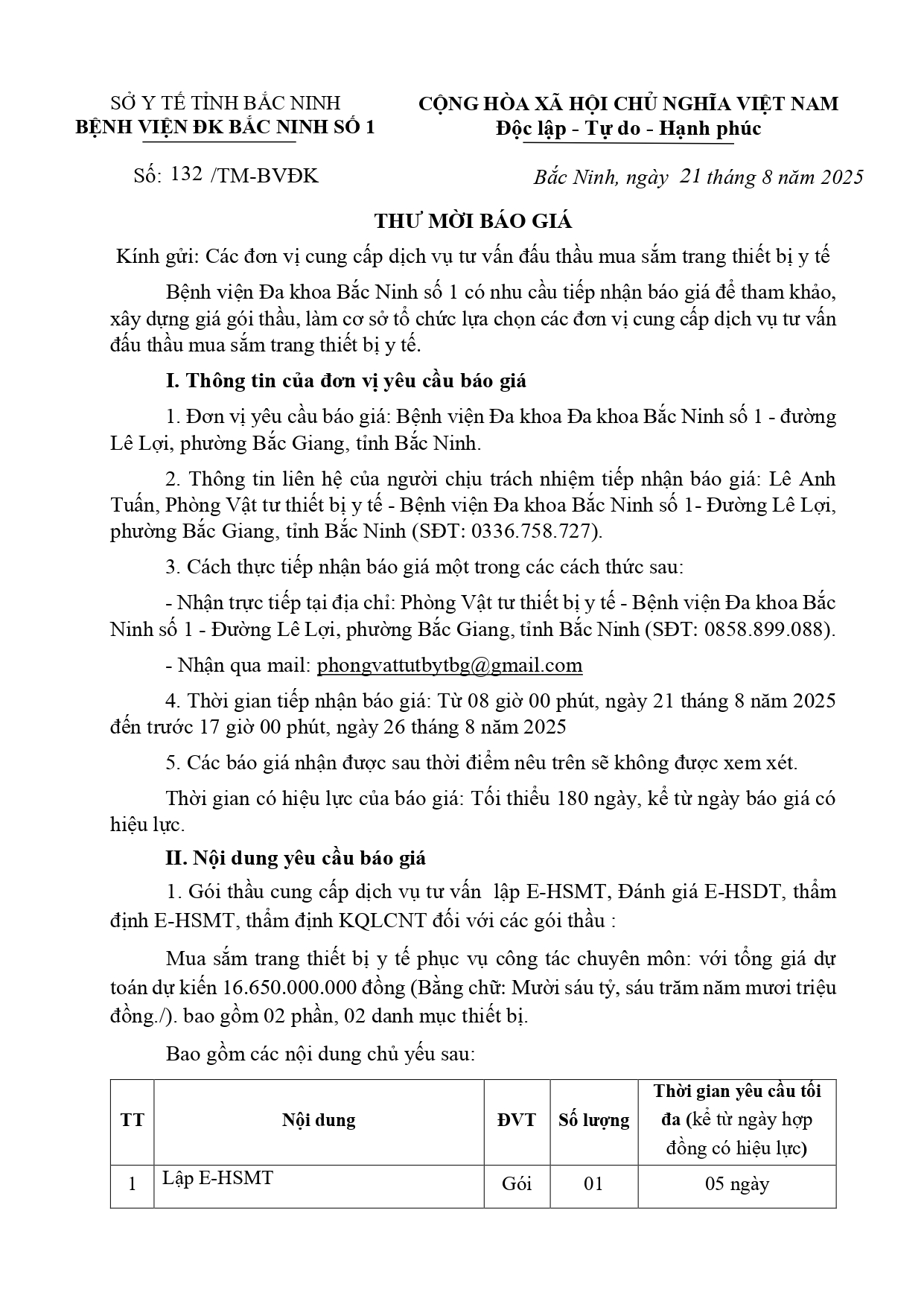 Thứ 5, 21/08/2025 | 13:49 A- A A+ | Thư mời báo giá số 132 Đọc bài Lưu File thư mời: Thư mời chào giá tư vấn TTB_0001.pdf------------------- Tổng số điểm của bài viết là: 0 trong 0 đánh giá Click để đánh giá bài viết