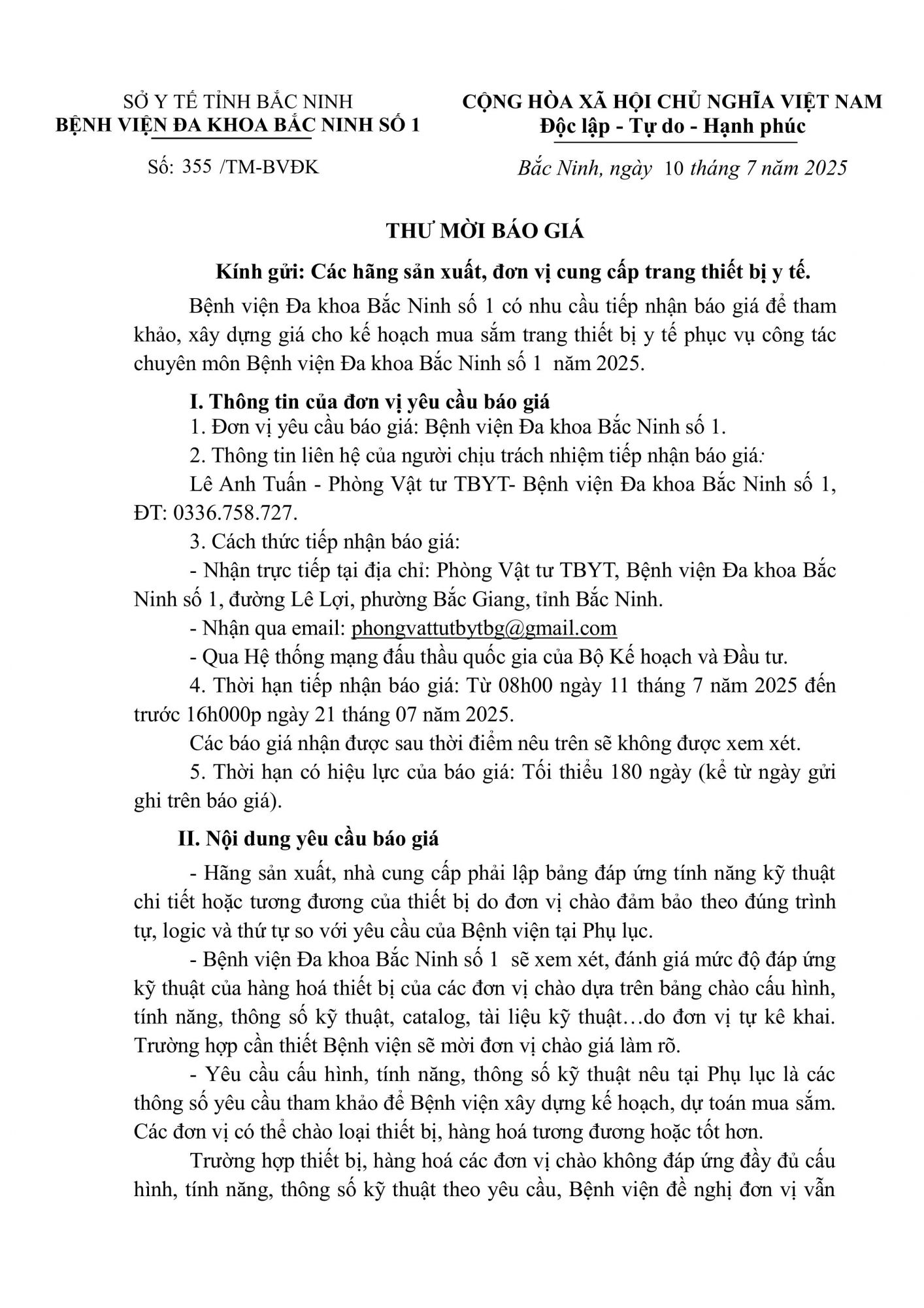 Thứ 6, 11/07/2025 | 14:24 A- A A+ | Thư mời báo giá số 355 (có phụ lục) Đọc bài Lưu File thư mời + Phụ lục: Thư mời báo giá số 355.rar----------------- Tổng số điểm của bài viết là: 0 trong 0 đánh giá Click để đánh giá bài viết