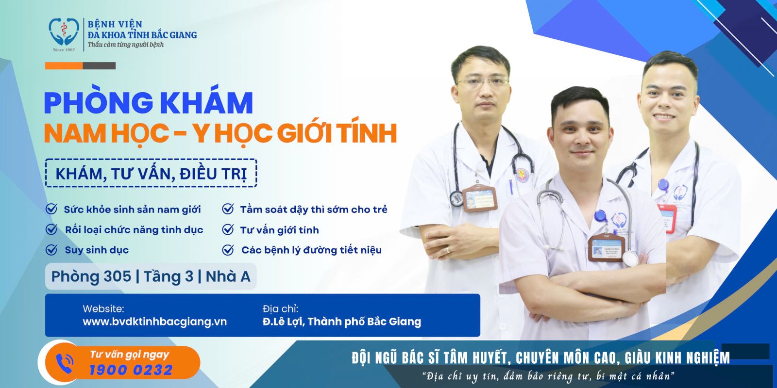 • Bệnh viện Đa khoa tỉnh Bắc Giang có chuyên khoa nam học dành riêng cho việc tư vấn, khám chữa các bệnh lí sinh sản nam khoa. Các bác sĩ được đào tạo bài bản, chuyên sâu, trẻ, nhiệt huyết.