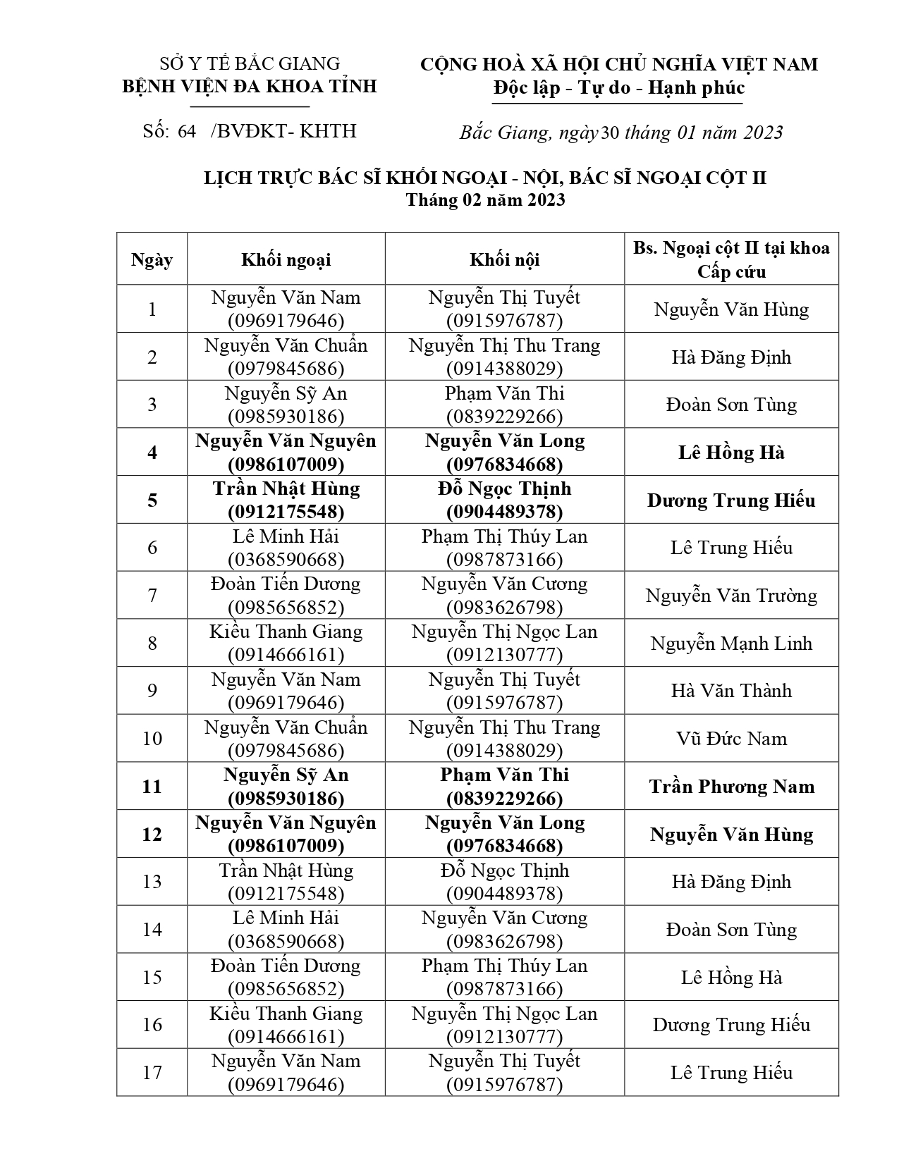 Thứ 2, 30/01/2023 | 15:09 A- A A+ | LỊCH TRỰC KHỐI T02-2023 Đọc bài Lưu Tổng số điểm của bài viết là: 0 trong 0 đánh giá Click để đánh giá bài viết