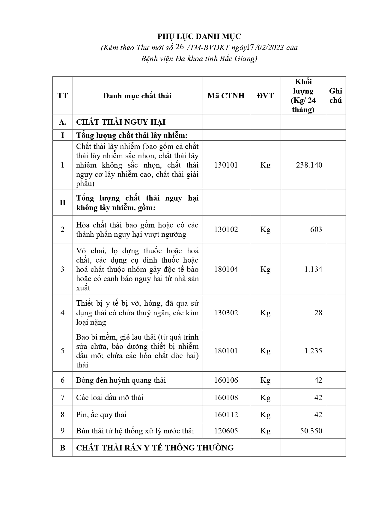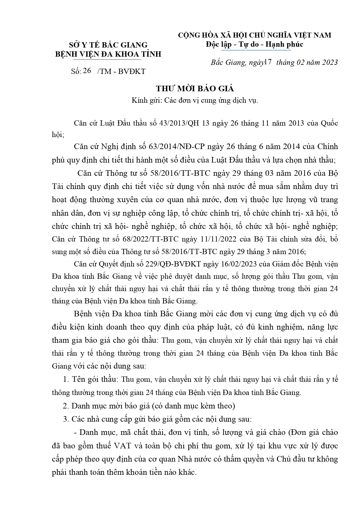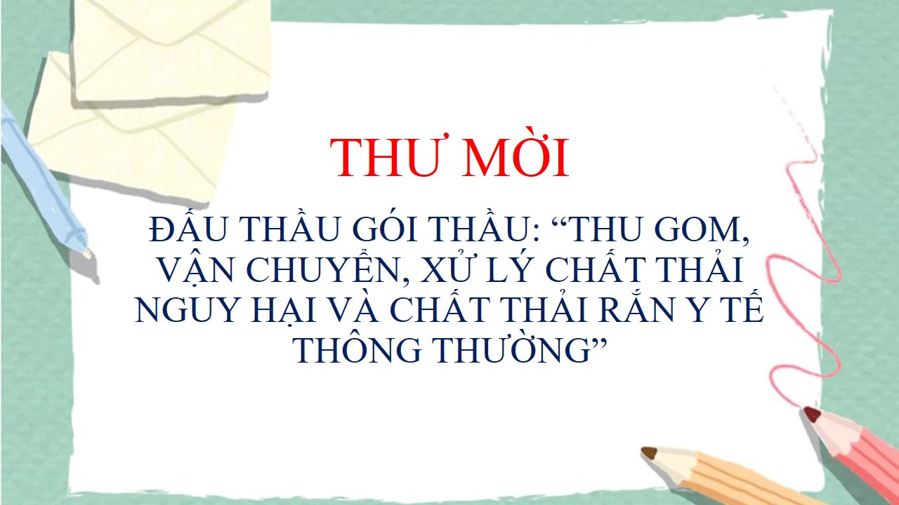 Thư mời Gói thầu: Thu gom, vận chuyển, xử lý chất thải nguy hại và chất thải rắn y tế thông thường