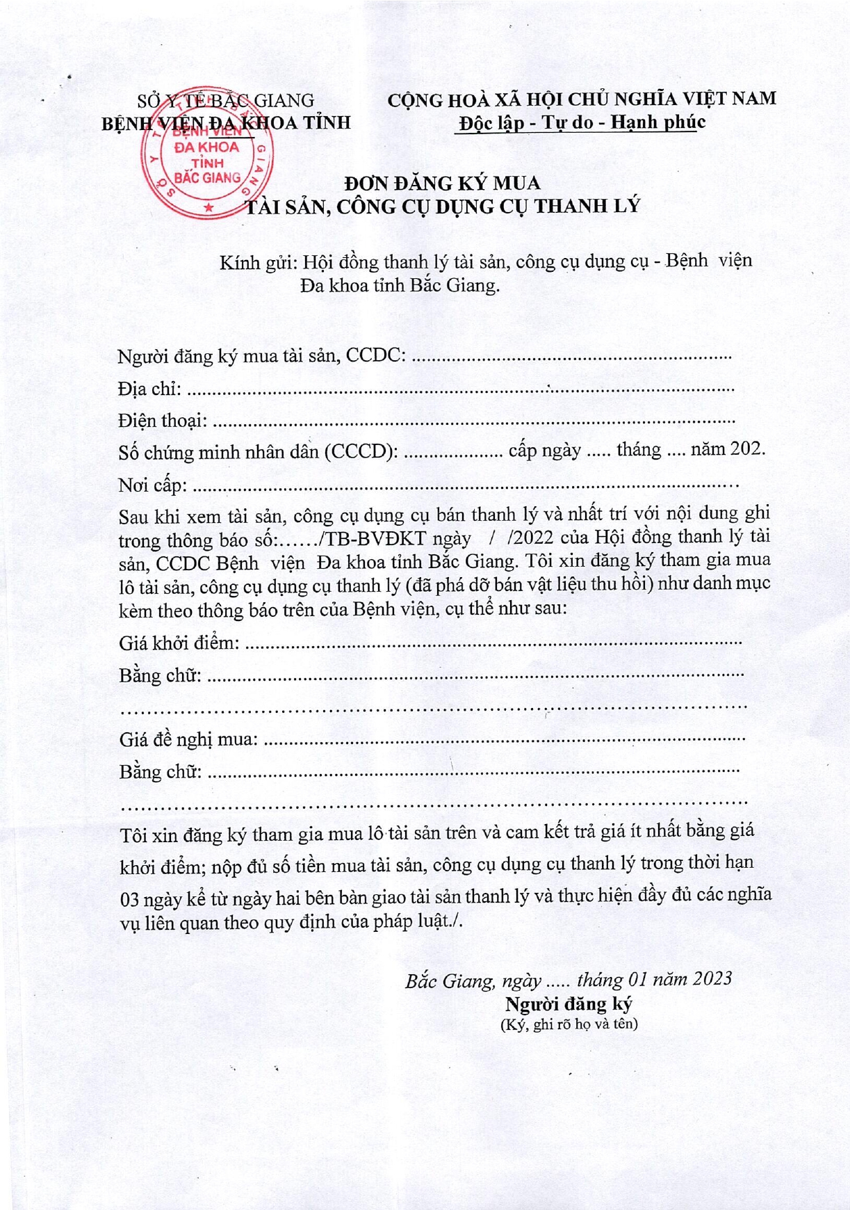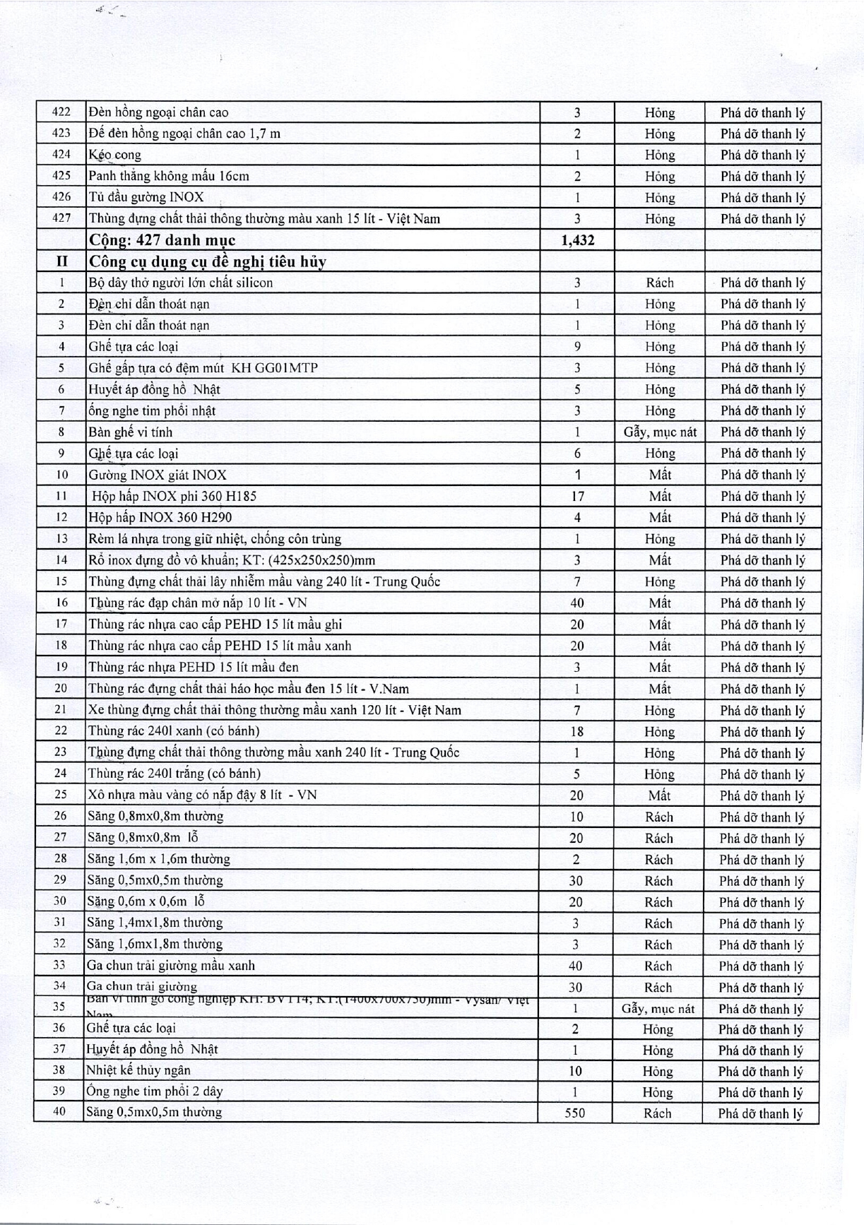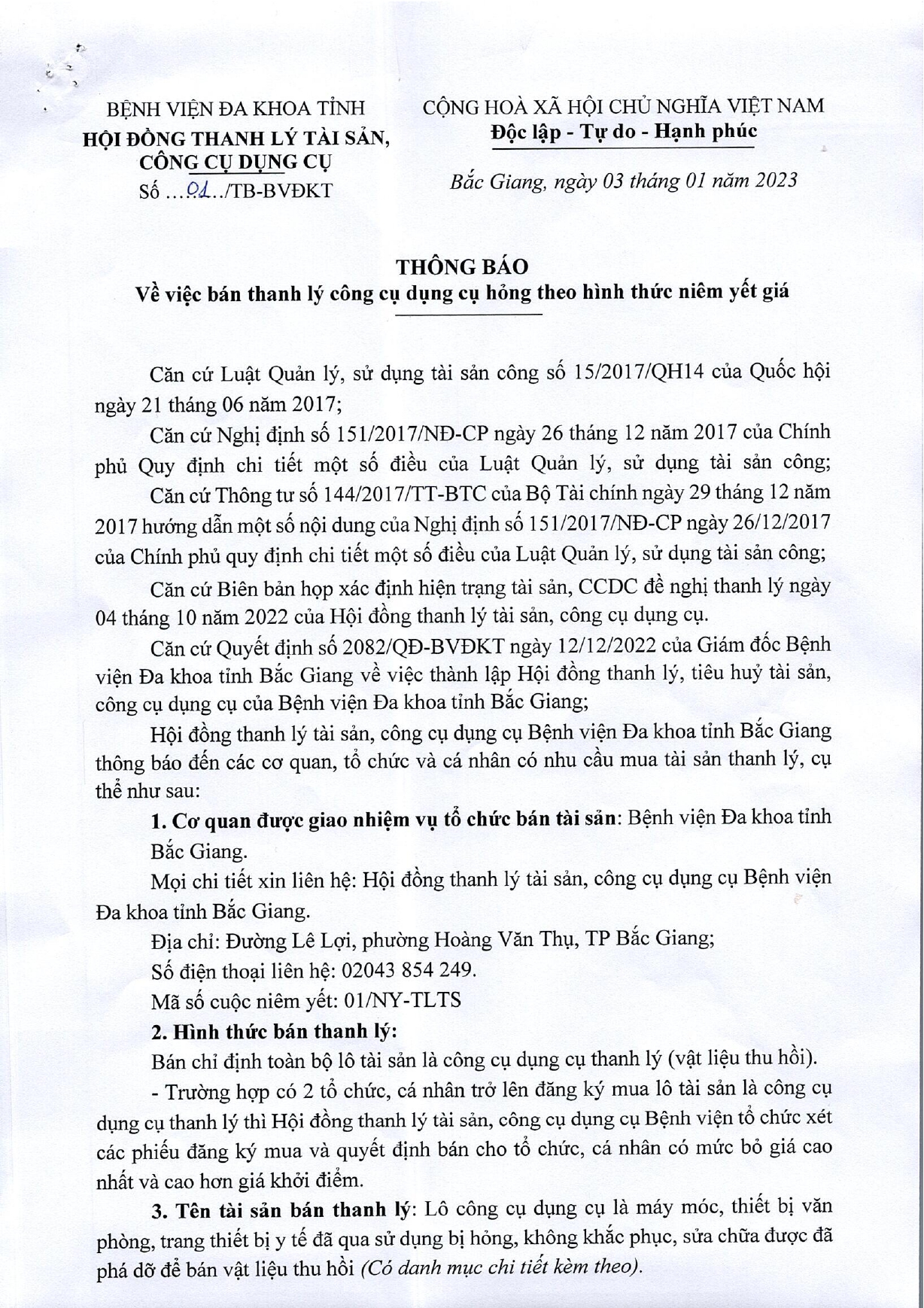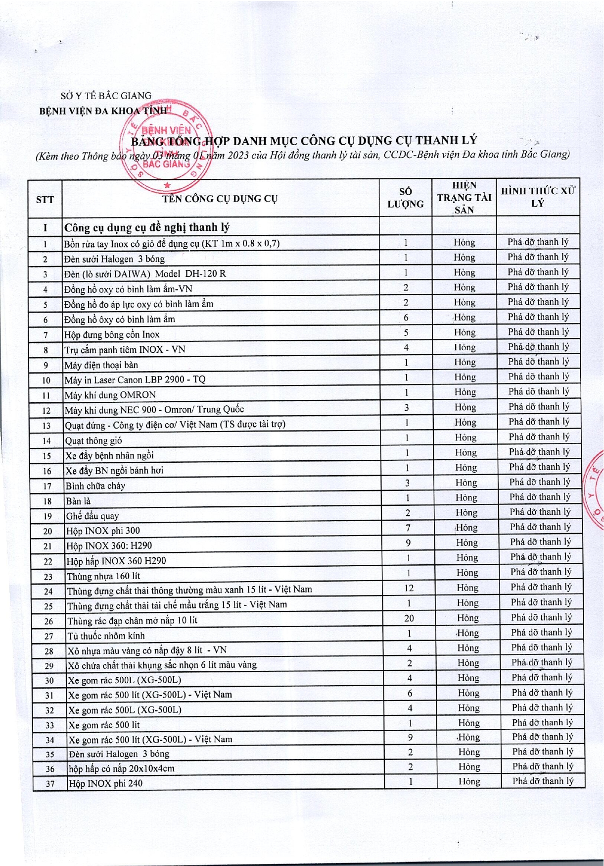 Thứ 4, 04/01/2023 | 11:41 A- A A+ | Thanh lý tài sản bệnh viện Đọc bài Lưu Tổng số điểm của bài viết là: 0 trong 0 đánh giá Click để đánh giá bài viết