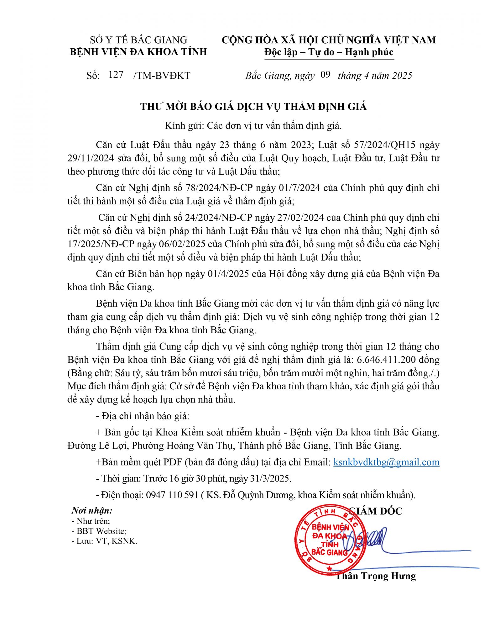 Thứ 4, 09/04/2025 | 09:31 A- A A+ | Thư mời báo giá số 127 Đọc bài Lưu File thư mời: 10.1.QD-thanh-lap-to-tham-dinh-goi-CNVS_signed_signed_signed_signed (1).pdf Tổng số điểm của bài viết là: 0 trong 0 đánh giá Click để đánh giá bài viết