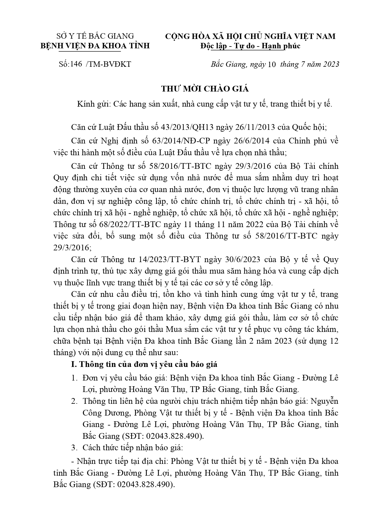 Thứ 2, 10/07/2023 | 14:46 A- A A+ | Thư mời báo giá số 146 ngày 10/7/2023 (chỉnh sửa) DM_Thu___mo____i__2__signed_2b0a4e8819.pdf Đọc bài Lưu File đính kèm: 1. Mẫu báo giá TT14.docx 2. Danh mục 1 kèm thư mời 146..pdf Tập tin đính kèm Tổng số điểm của bài viết là: 0 trong 0 đánh giá Click để đánh giá bài viết