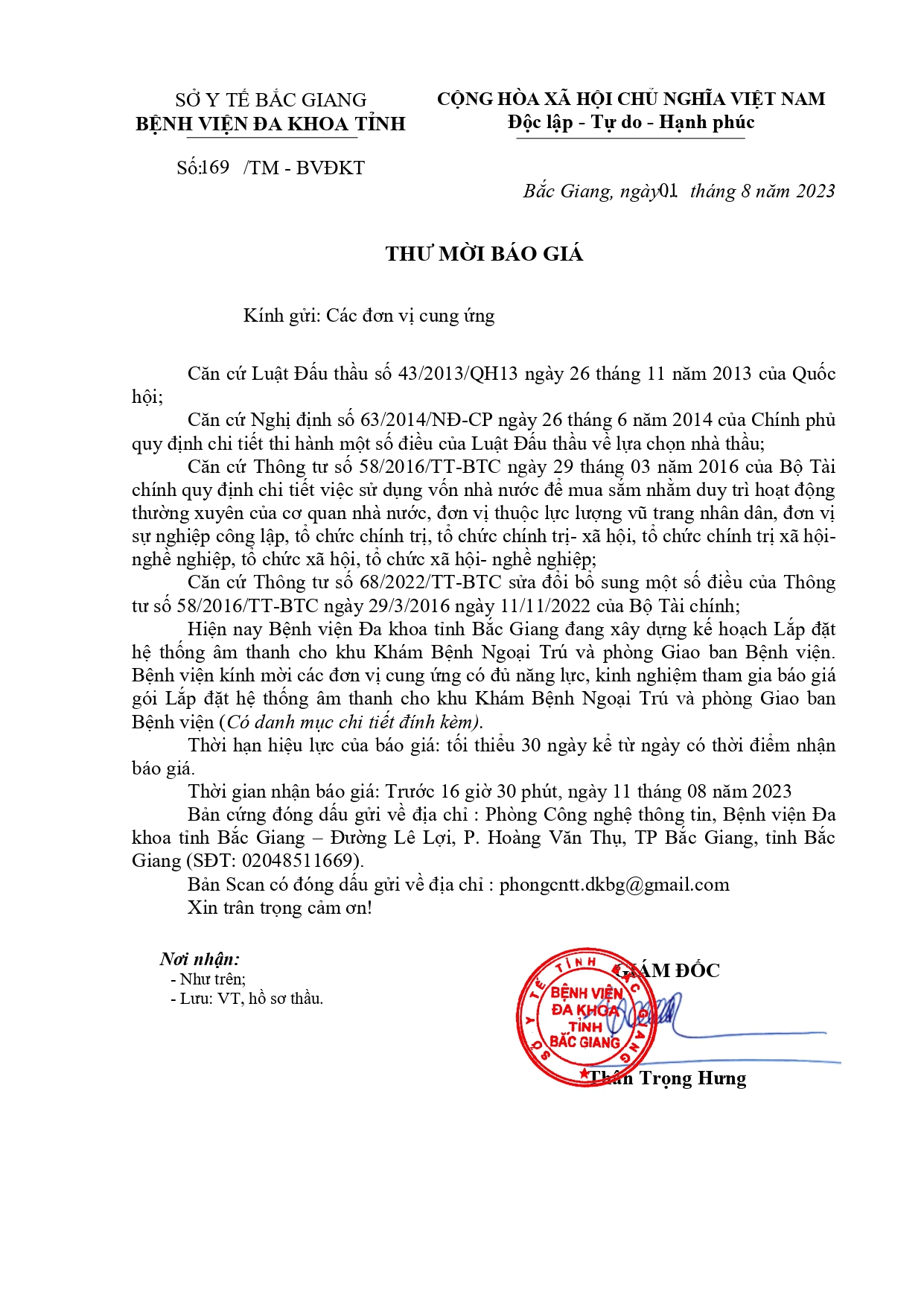 Thứ 3, 01/08/2023 | 14:04 A- A A+ | Thư mời báo giá số 169 ngày 01/08/2023 Đọc bài Lưu File thư mời: Thư mời - Âm thanh_signed_signed_signed_signed_signed_signed.pdf Tổng số điểm của bài viết là: 0 trong 0 đánh giá Click để đánh giá bài viết