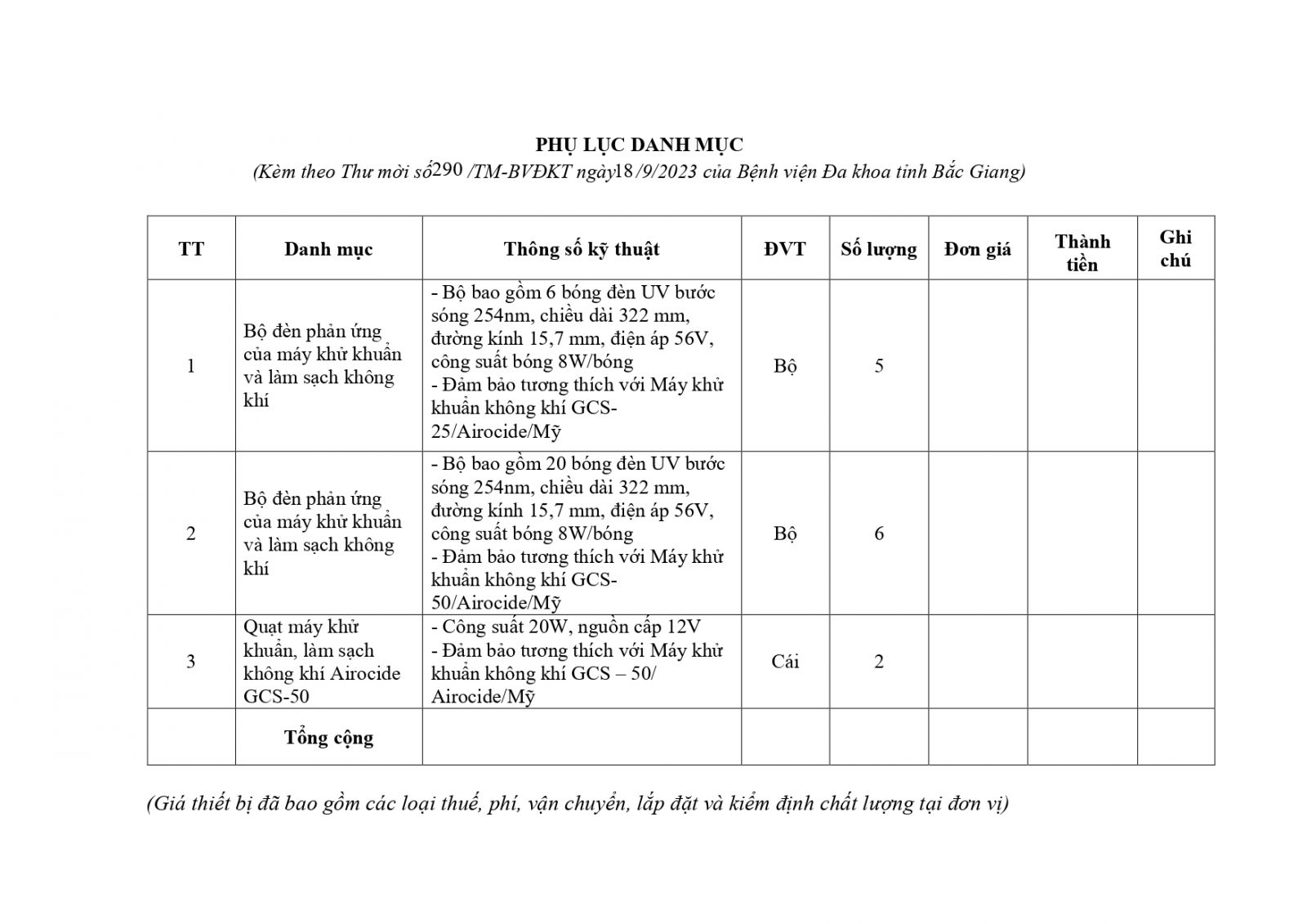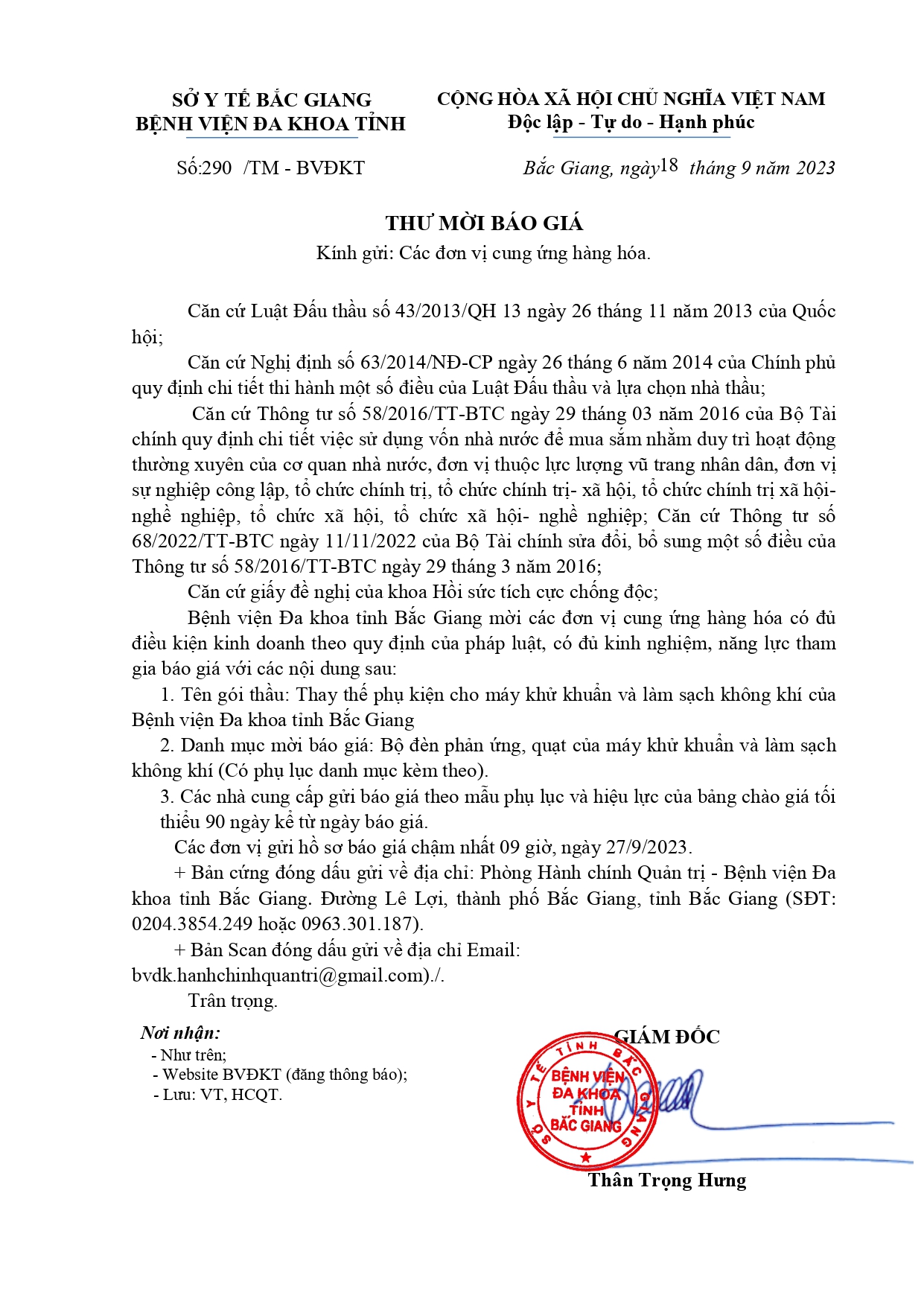 Thứ 4, 20/09/2023 | 10:56 A- A A+ | Thư mời báo giá số 290 ngày 18/09/2023 3__Thu_moi_bao_gia_bo_den_khu_khuan_nam_2023__Ban_trinh__signed_signed_signed_signed_signed_signed_e1b2119407.pdf Đọc bài Lưu File thư mời:3. Thư mời báo giá bộ đèn khử khuẩn năm 2023 (Bản trình)_signed_signed_signed_signed_signed_signed.pdf Tập tin đính kèm Tổng số điểm của bài viết là: 0 trong 0 đánh giá Click để đánh giá bài viết