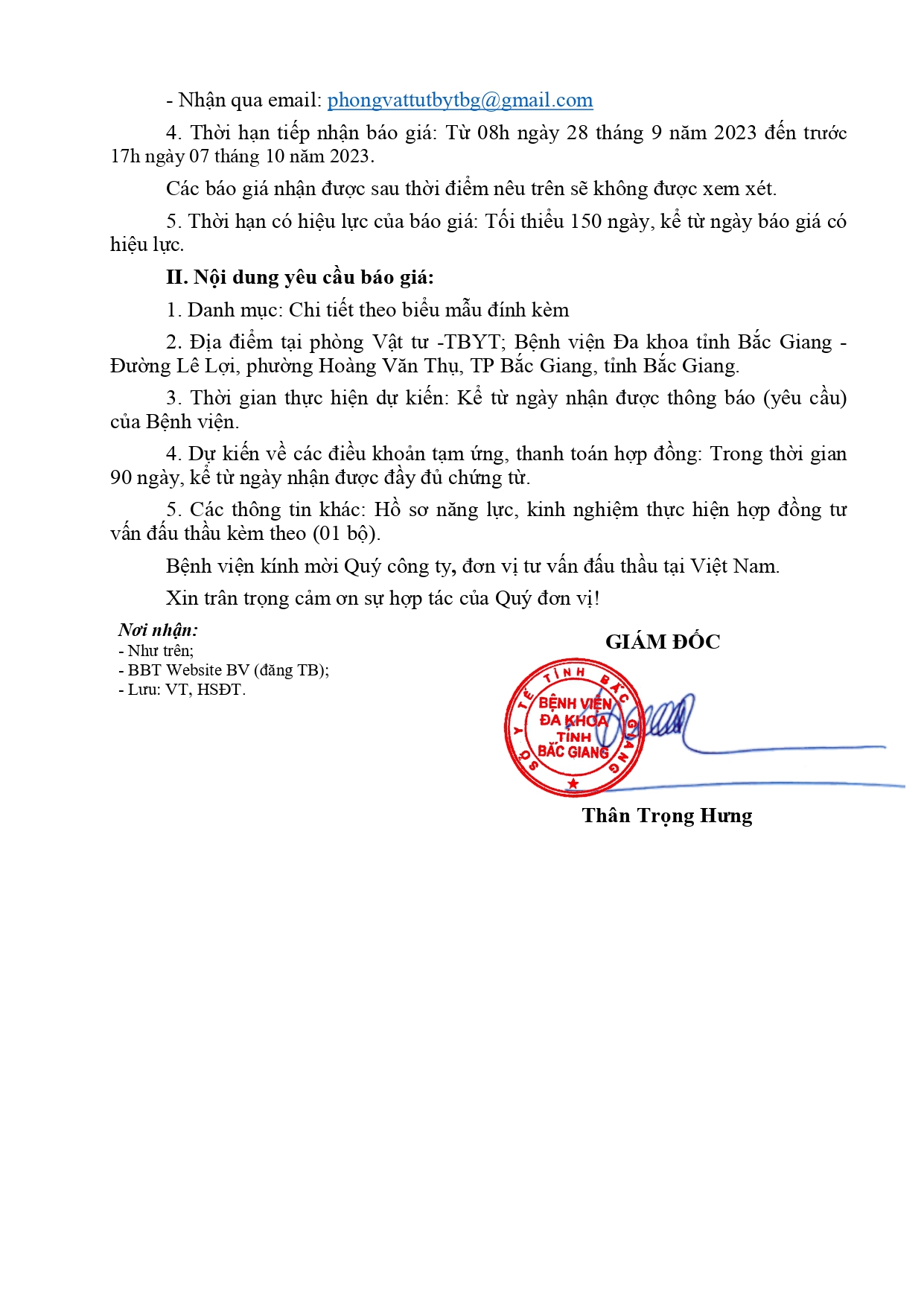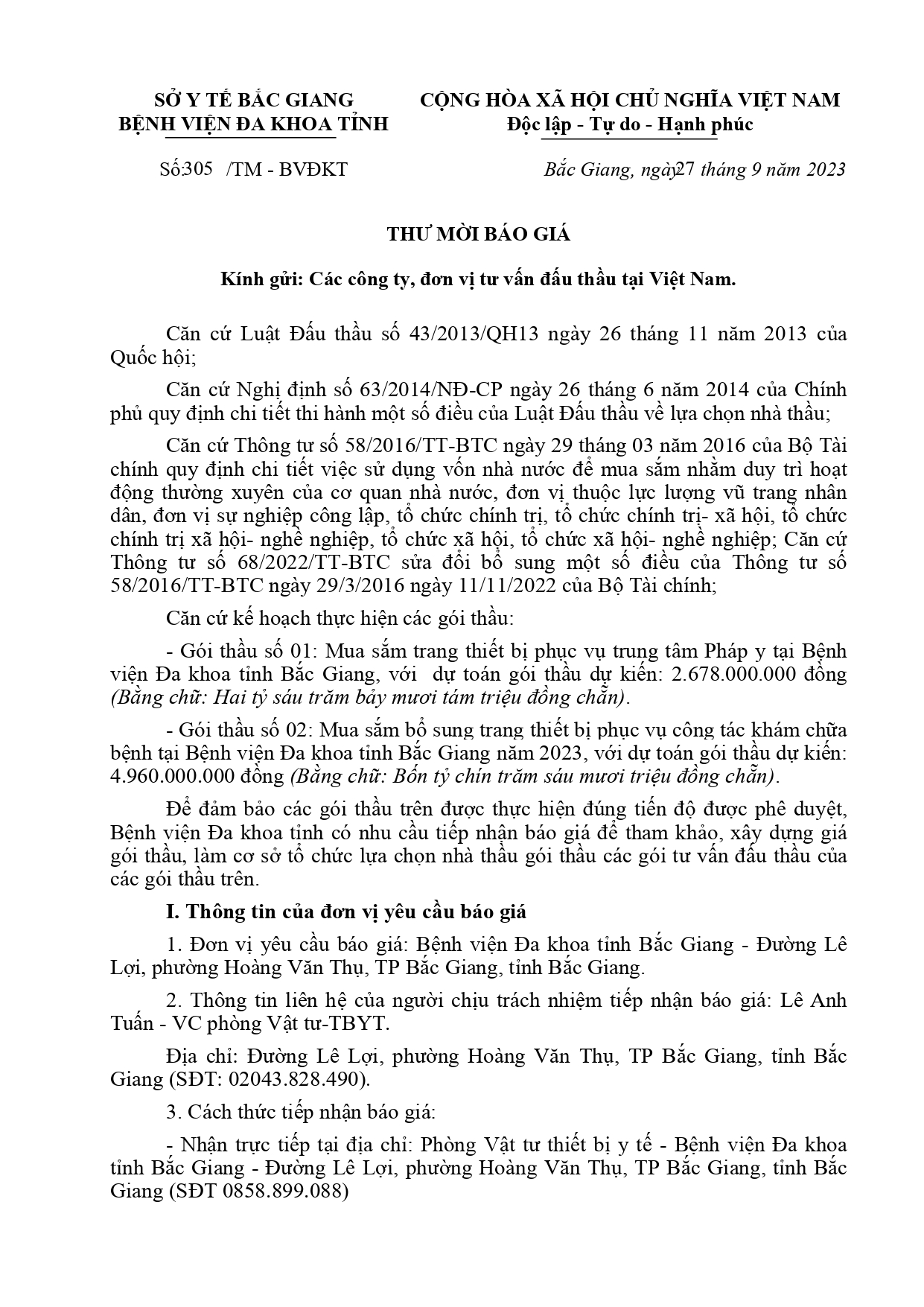 Thứ 5, 28/09/2023 | 08:39 A- A A+ | Thư mời báo giá số 305 ngày 27/09/2023 Đọc bài Lưu Tổng số điểm của bài viết là: 0 trong 0 đánh giá Click để đánh giá bài viết
