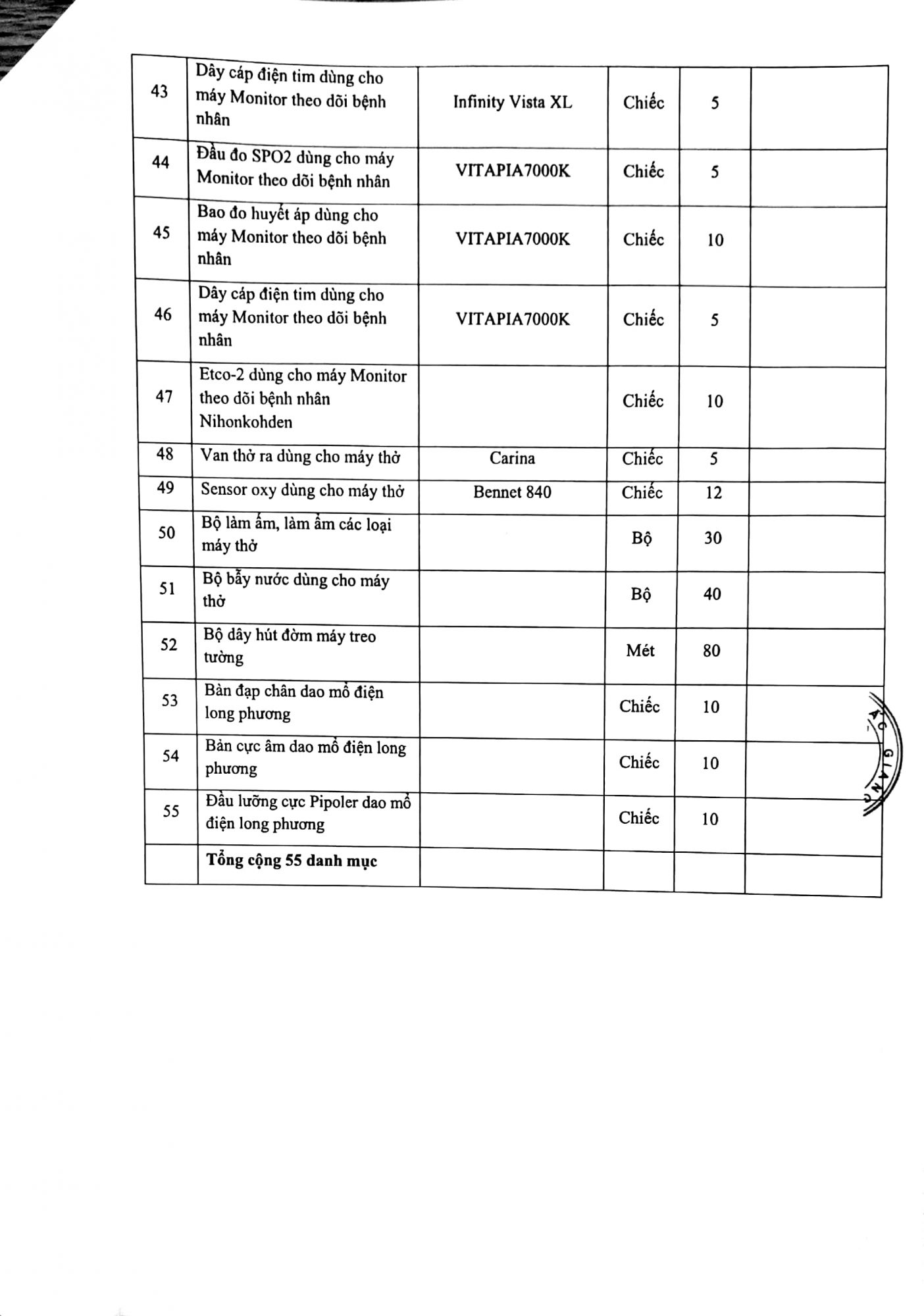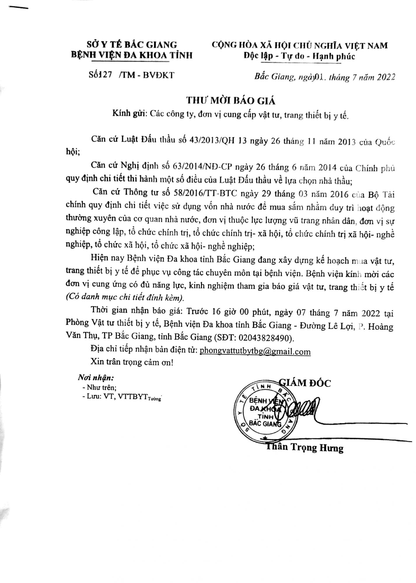 Thư mời báo giá "vật tư, trang thiết bị y tế"