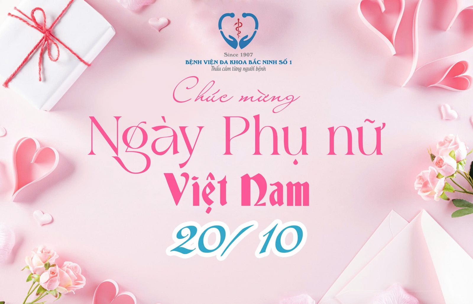 Nhân kỷ niệm Ngày thành lập Hội LHPN Việt Nam và Ngày Phụ nữ Việt Nam 20/10, Bệnh viện Đa khoa Bắc Ninh số 1 xin trân trọng gửi lời chúc tốt đẹp nhất tới tất cả chị em phụ nữ. Chúc chị em luôn xinh đẹp, rạng rỡ, hạnh phúc và thành công trong cuộc sống, tiếp tục kế thừa và phát huy truyền thống dân tộc, xứng đáng với 8 chữ vàng "Anh hùng, bất khuất, trung hậu, đảm đang".