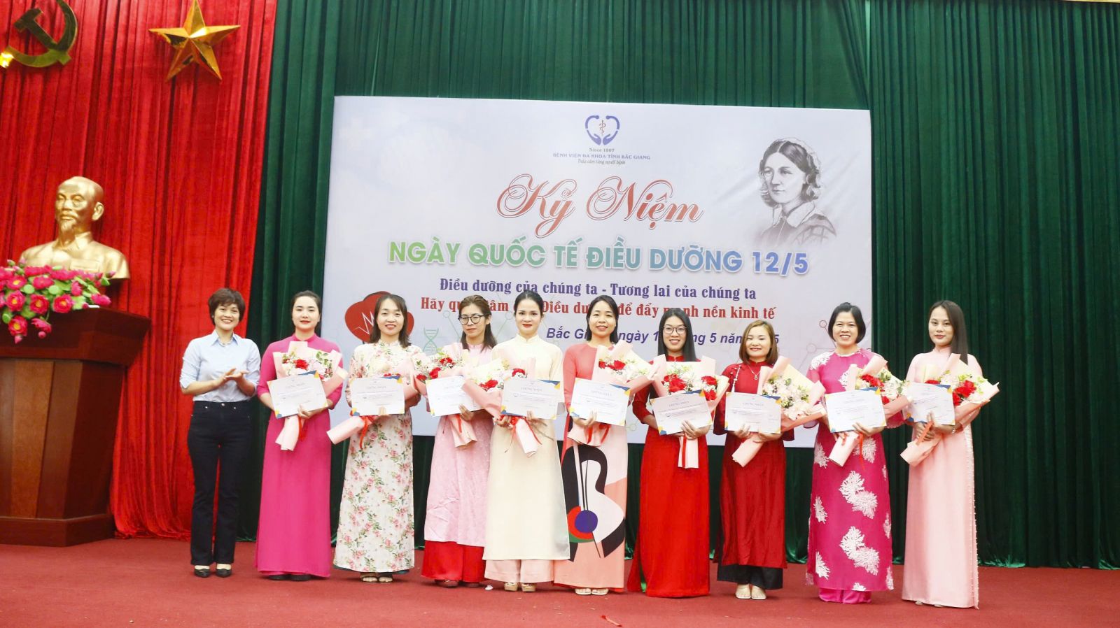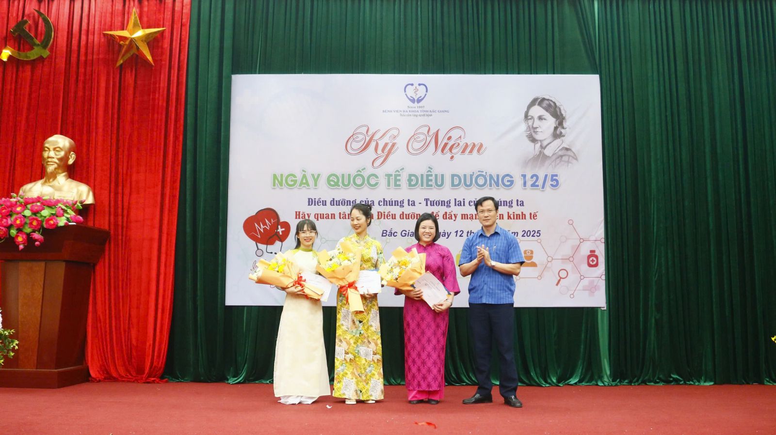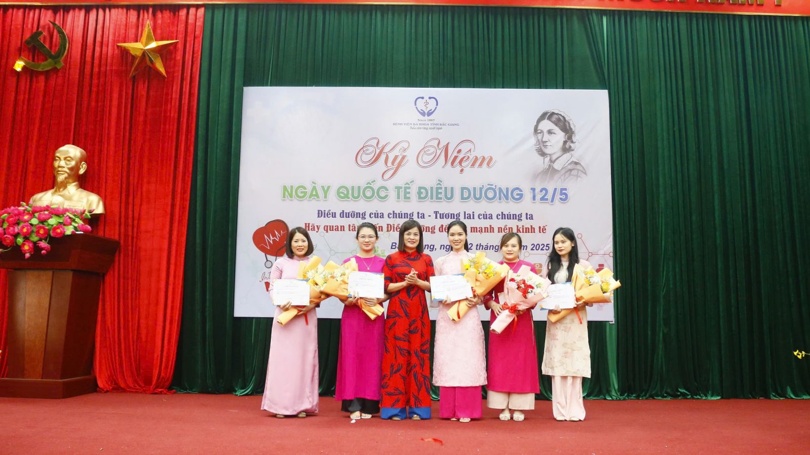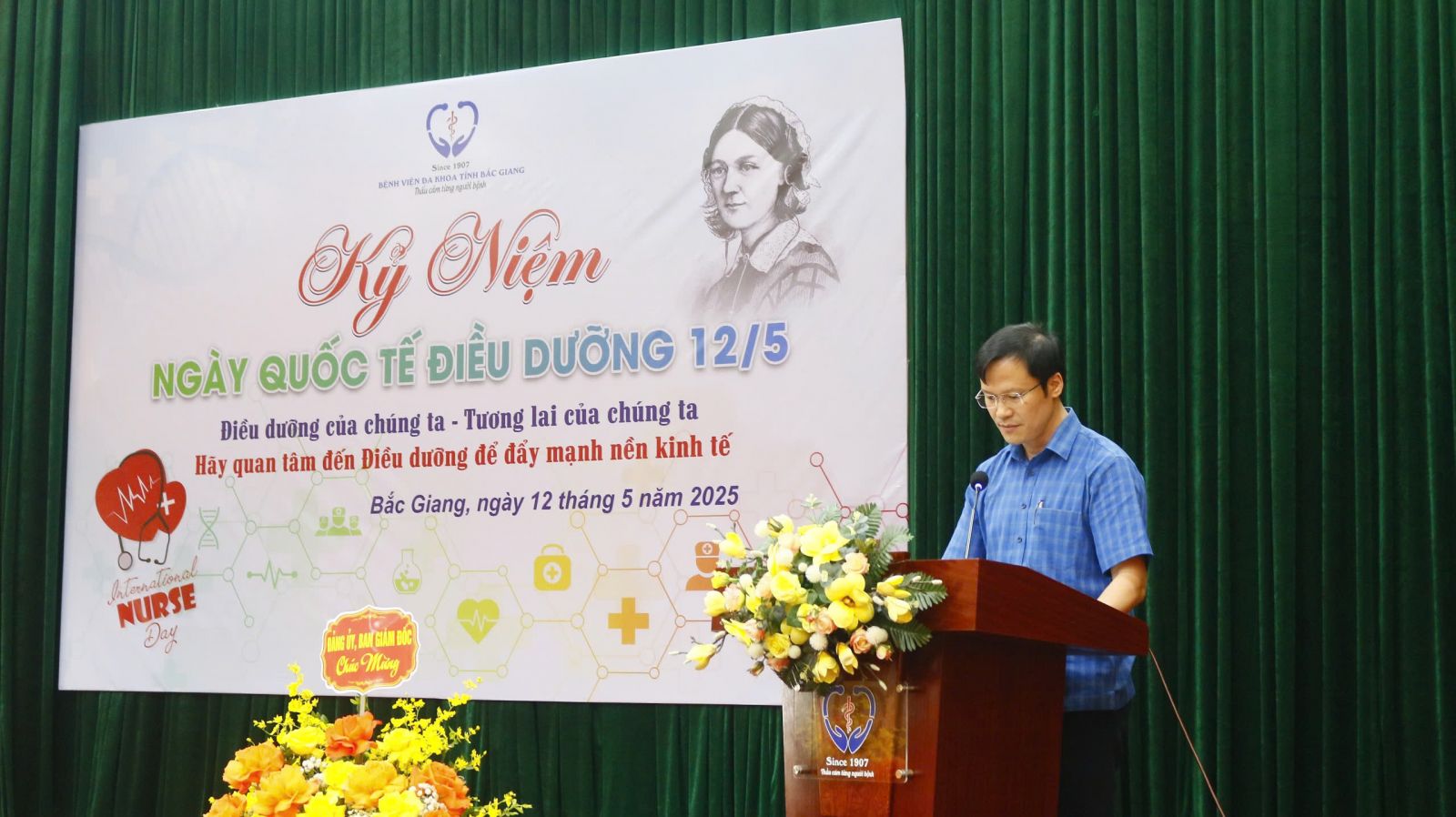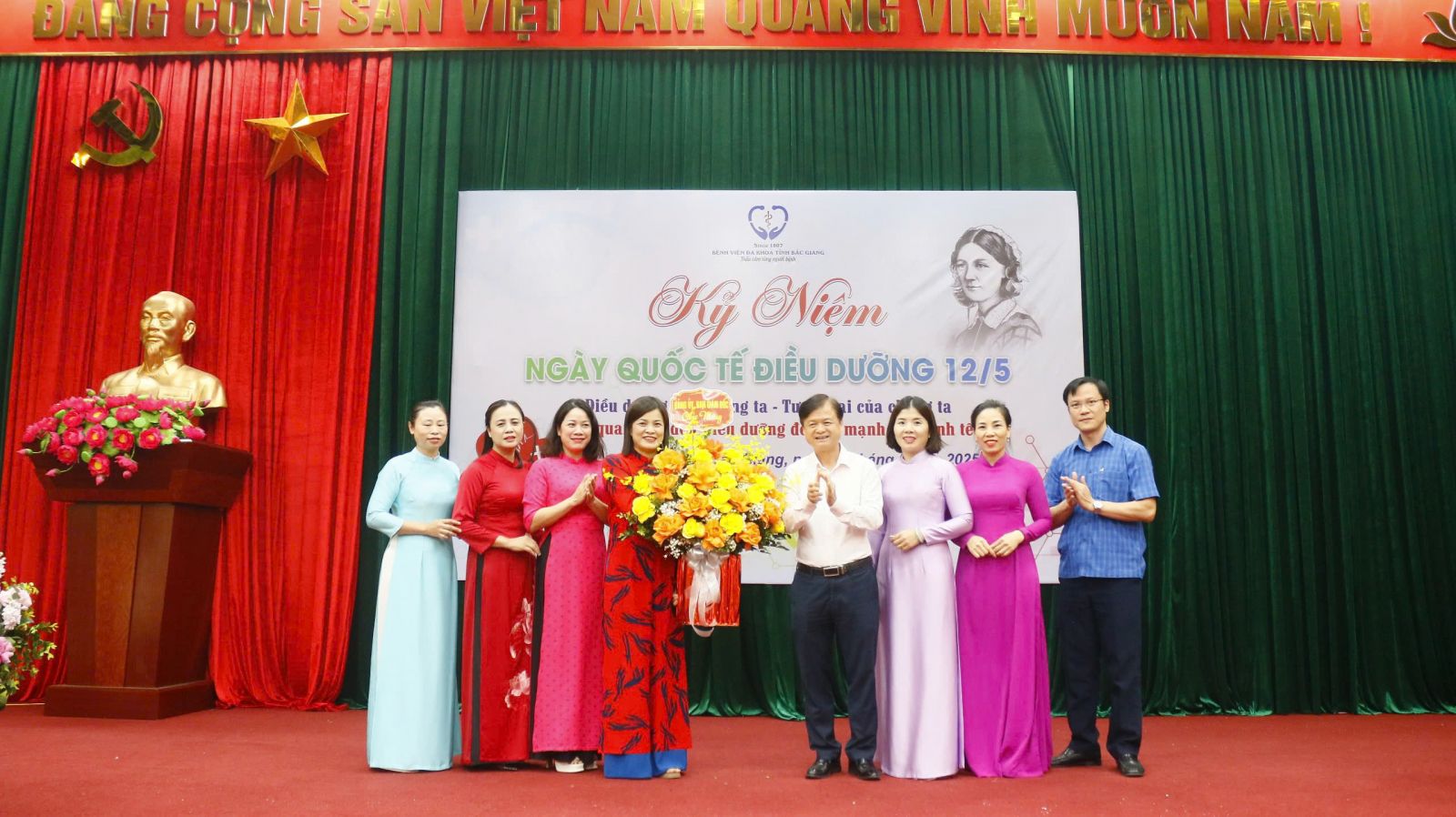 Chiều ngày 12/5/2025, tại Hội trường tầng 15 nhà G, Bệnh viện Đa khoa tỉnh Bắc Giang long trọng tổ chức lễ mít tinh kỷ niệm Ngày Quốc tế Điều dưỡng với chủ đề năm 2025 do Hội đồng Điều dưỡng Quốc tế (ICN) phát động: “Điều dưỡng của chúng ta. Tương lai của chúng ta. Hãy quan tâm đến Điều dưỡng để đẩy mạnh nền kinh tế”.