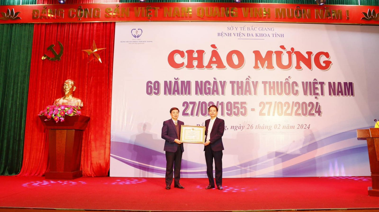 Sáng 26/2/2024, tại hội trường nhà G, Bệnh viện Đa khoa tỉnh Bắc Giang long trọng tổ chức Lễ mít ting kỷ niệm 69 năm Ngày Thầy thuốc Việt Nam (27/2/1955- 27/2/2024) và trao danh hiệu thi đua cho các cá nhân có thành tích xuất sắc.