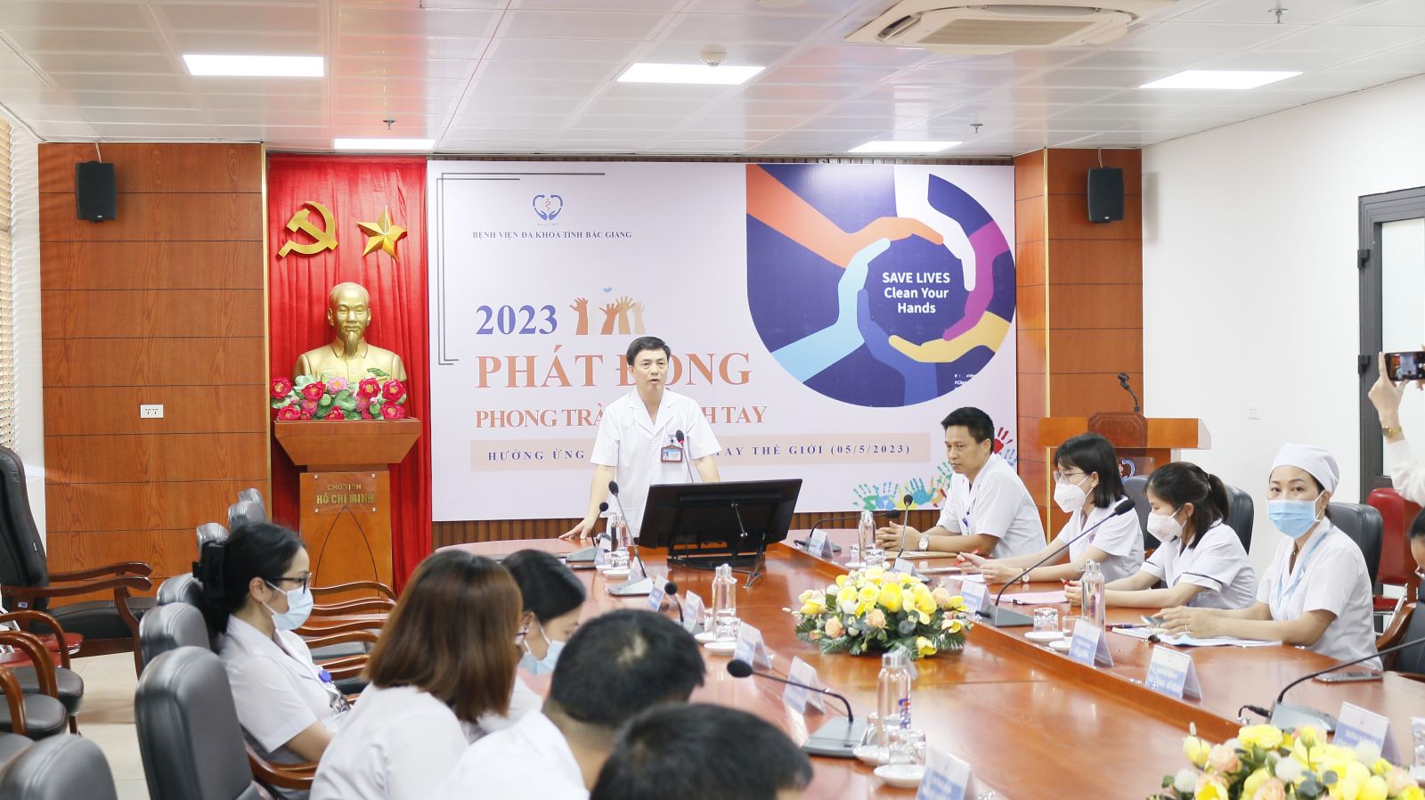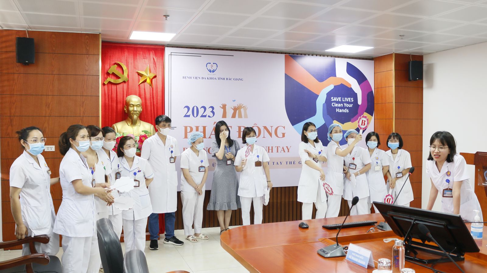 Nhằm nâng cao nhận thức của nhân viên y tế về tầm quan trọng của việc vệ sinh tay đối với sức khỏe cộng đồng nói chung, và hỗ trợ phòng ngừa nhiễm khuẩn tại bệnh viện nói riêng. Giữa bối cảnh dịch bệnh COVID-19 đang có nhiều diễn biến phức tạp trở lại, việc đẩy mạnh tuyên truyền và nâng cao ý thức giữ tay sạch khuẩn không chỉ gói gọn trong đội ngũ nhân viên y tế, mà cần được mở rộng ra cộng đồng. Chiều 05/5/2023, hưởng ứng Ngày vệ sinh tay thế giới 05/5, Bệnh viện Đa khoa tỉnh Bắc Giang tổ chức lễ phát động phong trào vệ sinh tay năm 2023.