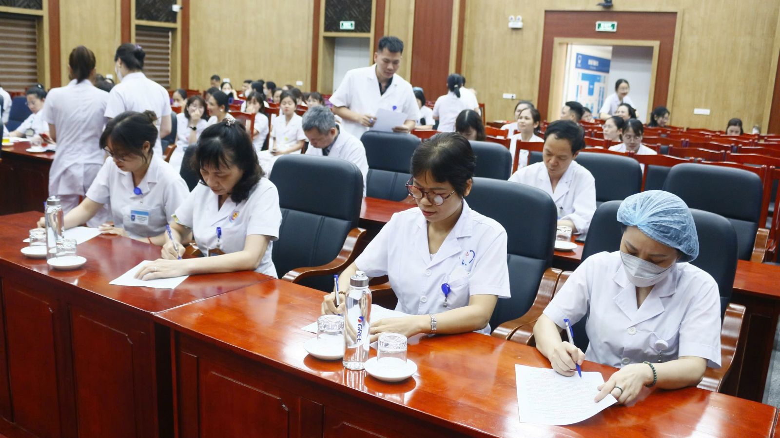 Ngay sau lễ phát động là cuộc thi “Kiến thức Vệ sinh tay và phòng ngừa chuẩn” với sự tham gia của 48 thí sinh đại diện cho các đơn vị. Cuộc thi được tổ chức theo hình thức “Rung chuông vàng”, mang đến không khí sôi nổi, hào hứng và cũng là dịp để nhân viên y tế bệnh viện giao lưu, củng cố kiến thức chuyên môn.