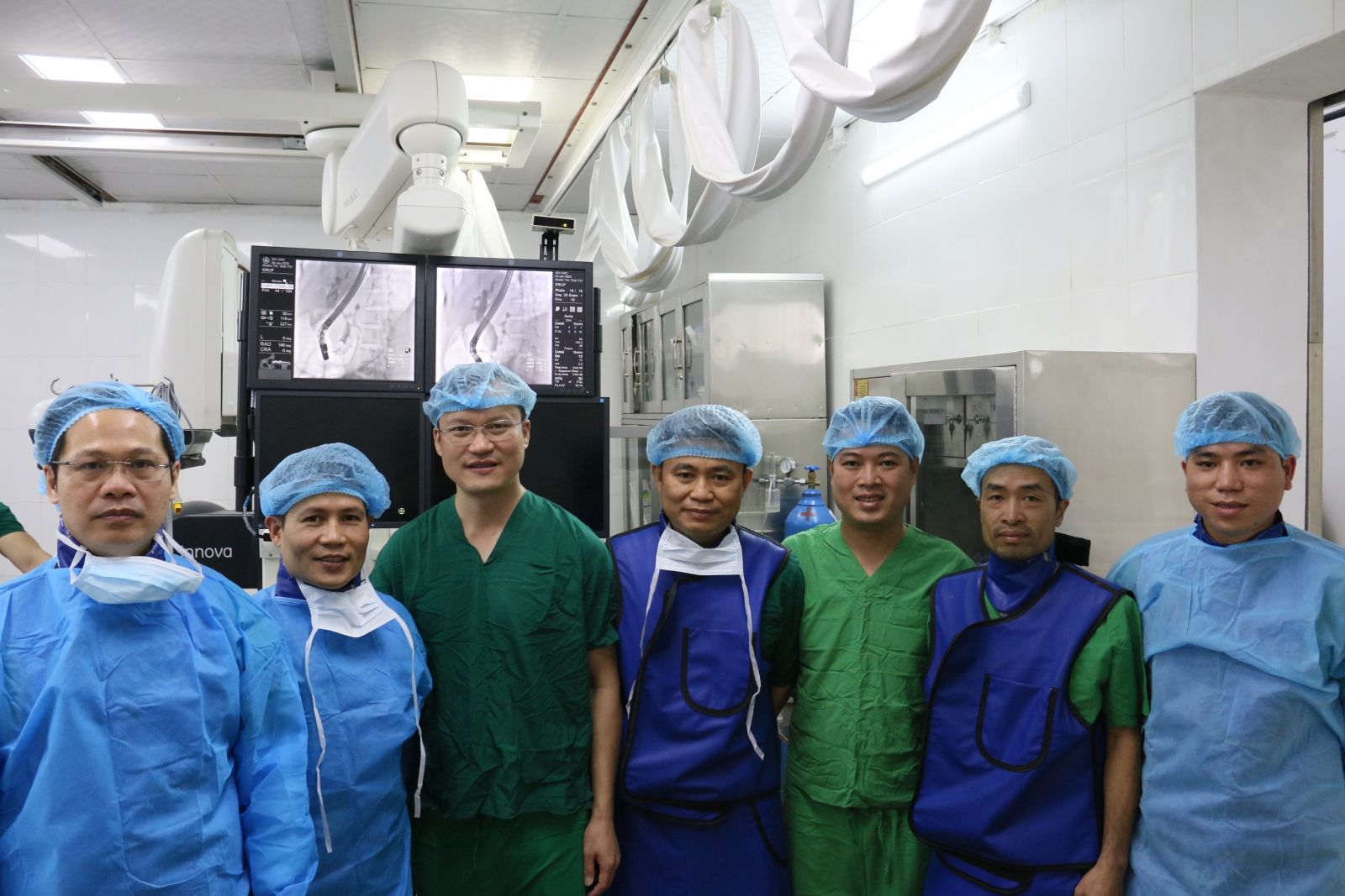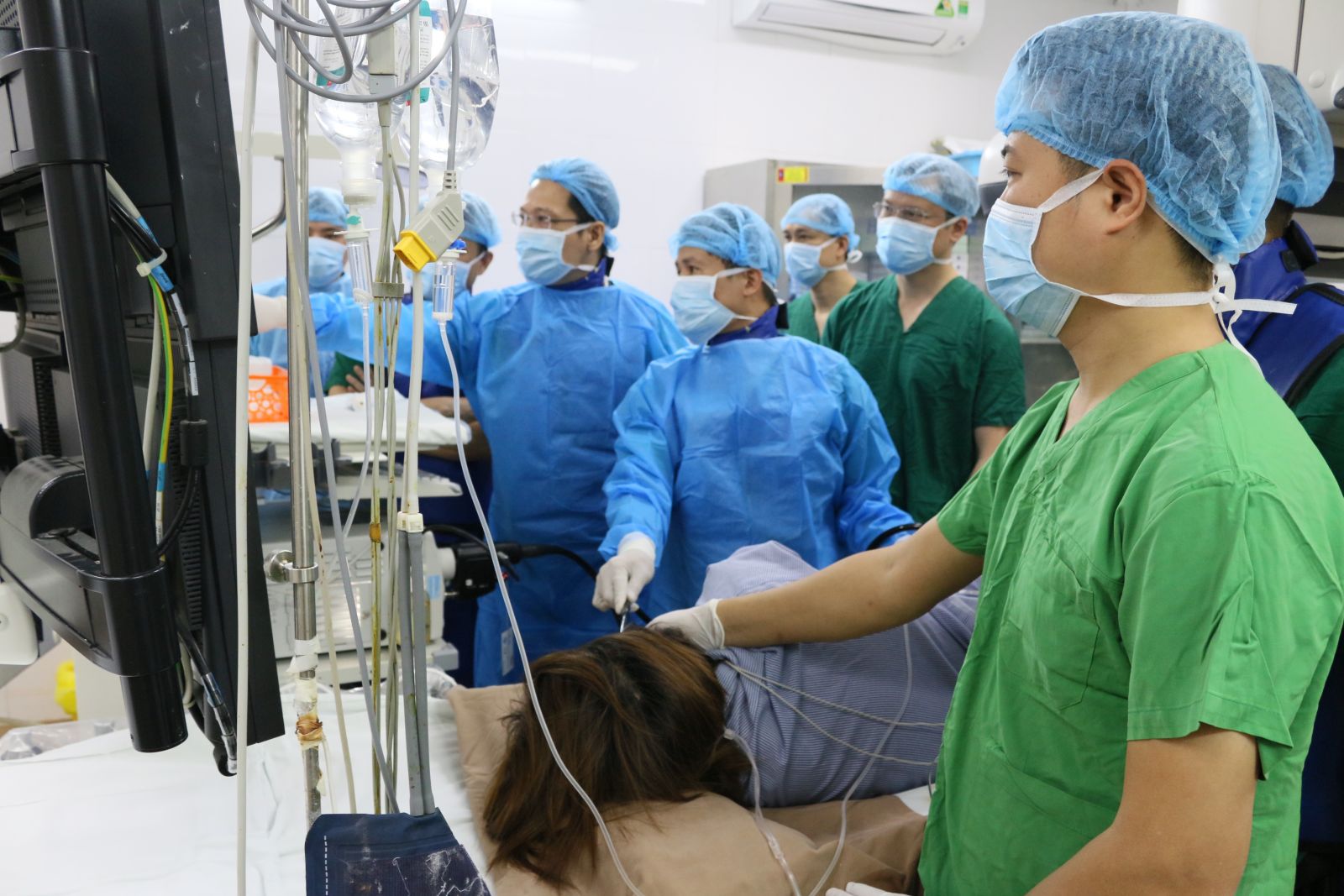 Ekip phẫu thuật do Bs.CKI Hà Huy Hùng, Phó trưởng khoa Thăm dò chức năng, bệnh viện Đa khoa tỉnh Bắc Giang cùng các cộng sự thực hiện; dưới sự tham gia giúp đỡ của TS.BS Dương Minh Thắng, PT Chủ nhiệm khoa Cấp cứu tiêu hoá A3-C, TS.BS Nguyễn Lâm Tùng, Phó Chủ nhiệm khoa Cấp cứu tiêu hoá A3-C, Bệnh viện TWQĐ 108.