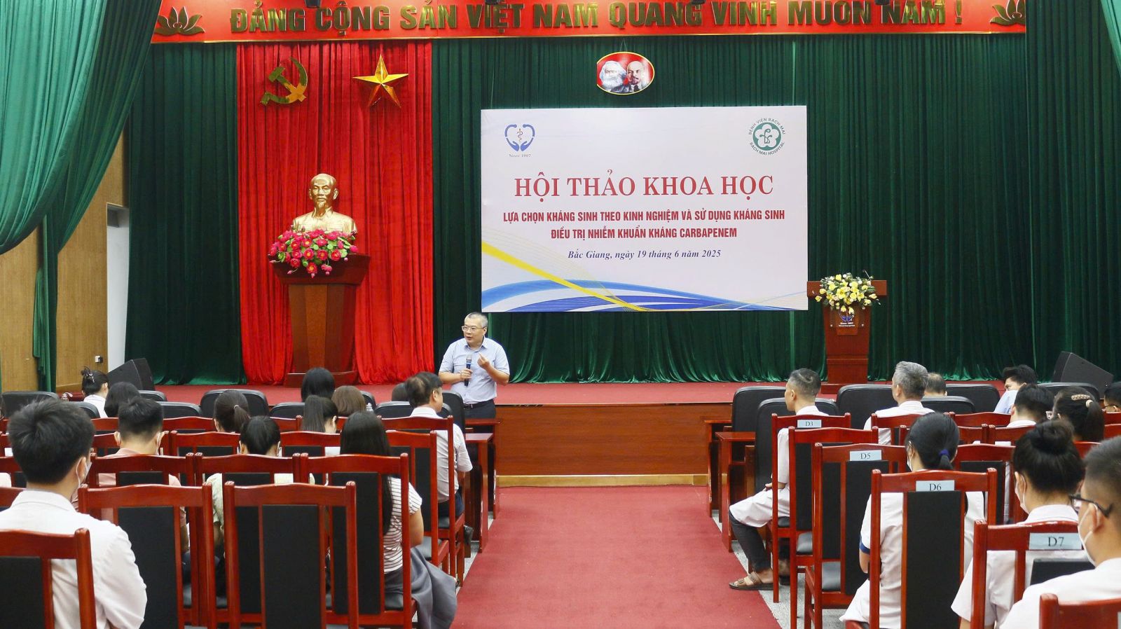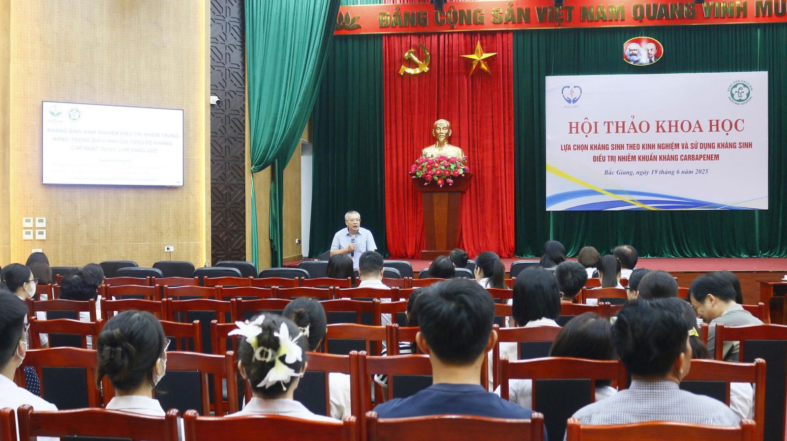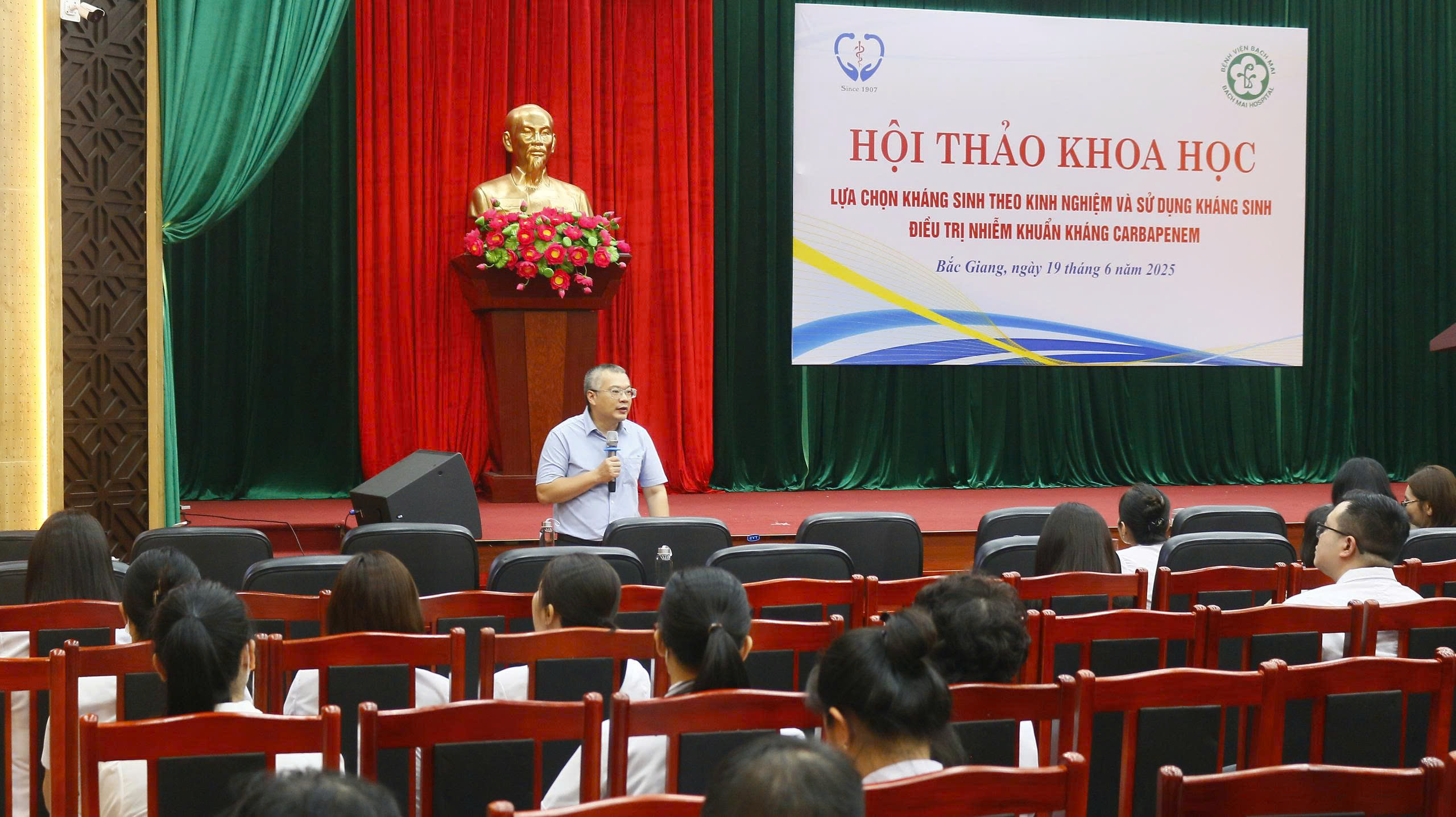 Chiều 19/6/2025, tại Hội trường, tầng 15 nhà G, Bệnh viện Đa khoa tỉnh Bắc Giang đã tổ chức Hội thảo khoa học với chủ đề “Lựa chọn kháng sinh theo kinh nghiệm và sử dụng kháng sinh điều trị nhiễm khuẩn kháng Carbapenem”. Chương trình do Bệnh viện chủ trì, phối hợp với Trung tâm Quốc gia về Thông tin thuốc và Theo dõi phản ứng có hại của thuốc – Trường Đại học Dược Hà Nội, thu hút sự tham gia của đông đảo cán bộ y tế tuyến tỉnh, huyện và các cơ sở y tế ngoài công lập trên địa bàn.