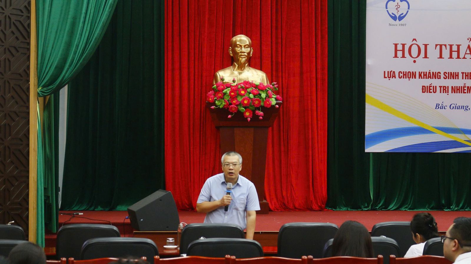 Phát biểu khai mạc hội thảo, BS.CKII Vũ Thanh Giang – Phó Giám đốc Bệnh viện Đa khoa tỉnh Bắc Giang nhấn mạnh: “Kháng sinh là vũ khí thiết yếu trong điều trị nhiễm khuẩn, tuy nhiên, việc lạm dụng hoặc sử dụng không hợp lý đang làm giảm hiệu lực của chính những loại thuốc này. Việc tổ chức hội thảo hôm nay thể hiện vai trò tiên phong của Bệnh viện trong công tác đào tạo liên tục, thúc đẩy ứng dụng các kiến thức mới, hướng tới mục tiêu điều trị an toàn, hiệu quả và giảm thiểu nguy cơ kháng thuốc tại tuyến tỉnh.”
