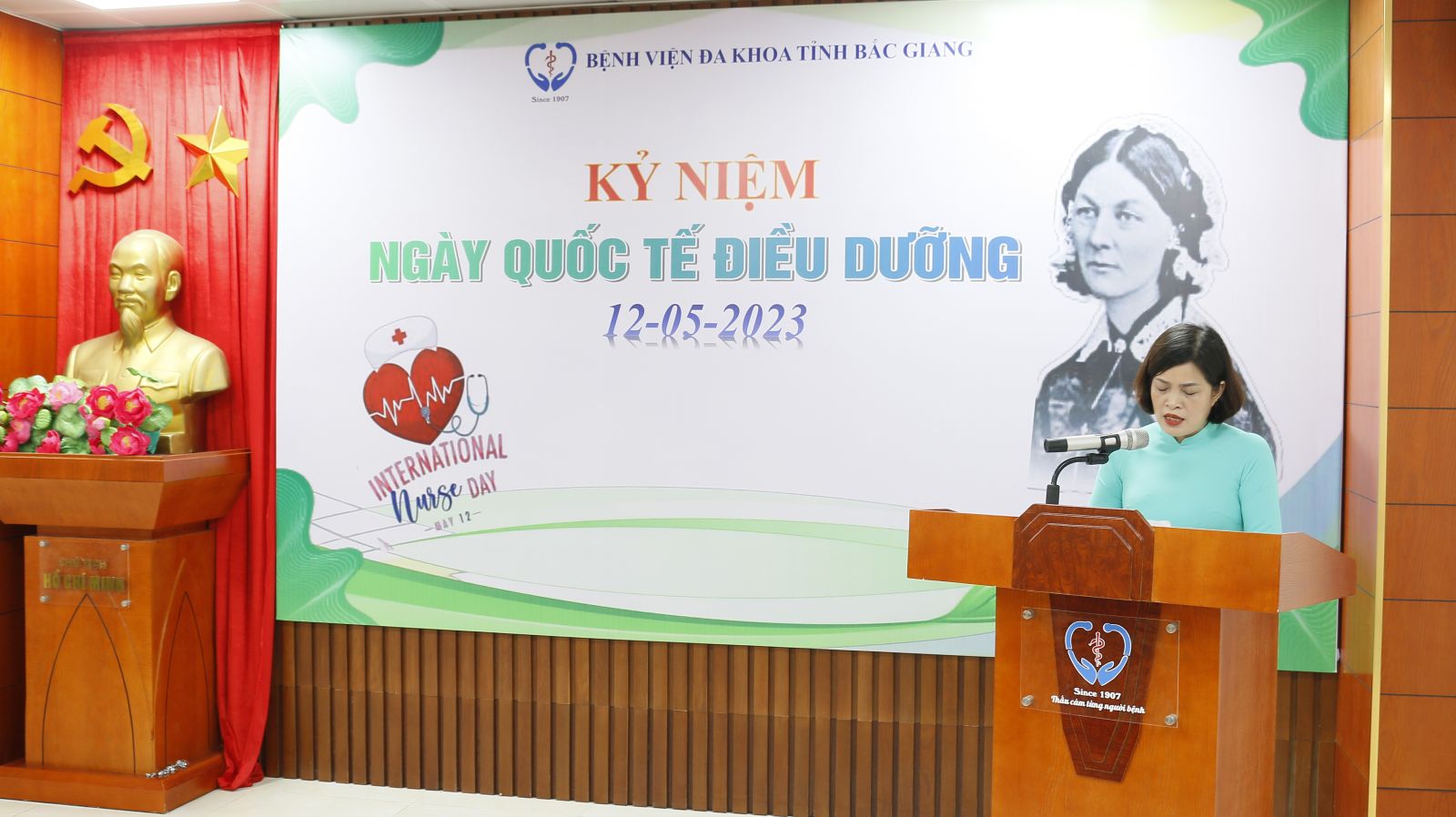 Nhân kỷ niệm 58 năm ngày Quốc tế Điều dưỡng (12/5/1965-12-5/2023). Ngày 11/5/2023, Bệnh viện Đa khoa tỉnh Bắc Giang tổ chức kỷ niệm ngày Quốc tế Điều dưỡng 12/5. Dự có BS.CKI Hoàng Trường Giang, Phó Giám đốc Bệnh viên; đại diện Công đoàn; Đoàn thanh niên và đông đảo Điều dưỡng viên, kỹ thuật y, hộ sinh của Bệnh viện.